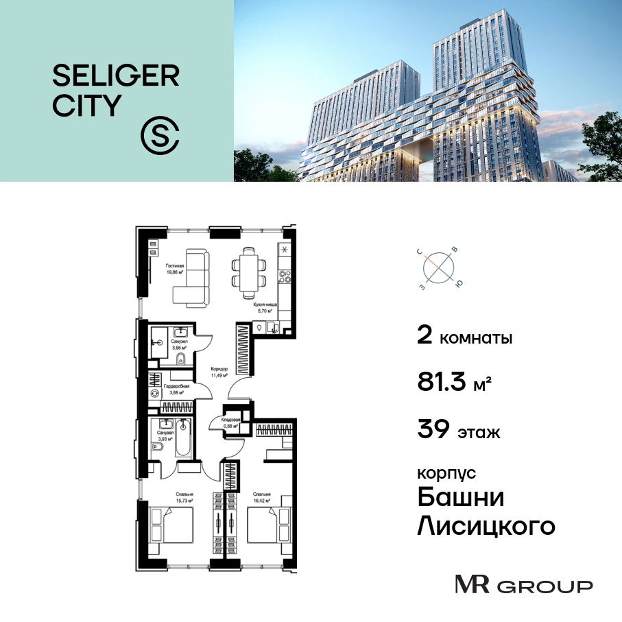 Прямая продажа от застройщика. Продаётся 2-к квартира общей площадью 81.35 кв. м с предчистовой отделкой в ЖК «Селигер Сити» на 39-м этаже башни Лисицкого. Корпуса четвертой очереди ЖК «Селигер сити» названы в честь трех великих представителей науки и архитектуры, новаторское видение которых — слишком смелое для своего времени — нашло воплощение в уникальных домах жилого комплекса. Вдохновленные авангардными идеями знаменитого советского архитектора Эля Лисицкого, архитекторы создали яркий центр притяжения всего района, задающий новый стандарт жизни в современном мегаполисе — две высокие «Башни Лисицкого» с современной интерпретацией горизонтального небоскреба. Преимущества проекта: Первые три очереди сданы. • 2 минуты пешком от метро «Селигерская» • Архитектурное решение от голландского бюро MLA + • 8 корпусов разной этажности от 8 до 45 этажей • Одна из самых больших придомовых территорий в Москве — размером с 4 футбольных поля • Огороженная охраняемая территория, круглосуточное видеонаблюдение • Европейский подход к благоустройству от бюро WOWHaus: детские площадки для разных возрастов, спортивные площадки, площадки воркаута, дорожки для бега и пеших прогулок, скейтпарк, хоккейная площадка, площадка для выгула собак • Искусственный пруд на территории комплекса с благоустроенной набережной и мостом • Продуманная концепция инфраструктуры: уютные кафе и рестораны, супермаркет, магазин фермерских продуктов, бытовые службы, салон красоты, детские сады • Панорамные окна высотой до 2,5 м, в корпусах 3 очереди витражное остекление высотой до 4,2 м • Широкий выбор квартир — от компактных студий до просторных квартир с тремя спальнями и пентхаусов • Четыре вида дизайнерской отделки квартир от бюро Вlank Architects • Возможность купить квартиру с предчистовой отделкой white box • «Умный дом» на платформе Ujin. Система безопасности, вход на территорию и в подъезд по биометрии или BLE-метке, въезд в паркинг по считывателю номера, контроль климата. Все для комфортной жизни! • Лобби по индивидуальному дизайн проекту от европейского бюро Вlank Architects: лаунж-зоны, ресепшен, колясочная, помещение для мытья лап животным после прогулки • Подземный паркинг на 2189 машино-мест по индивидуальному дизайну, с зарядными устройствами для электромобилей, постами для подкачки шин и келлерами • Надежный девелопер с опытом премиальных проектов MR Group Расположение комплекса: • 2 минуты от станции метро «Селигерская» • 7 минут на машине до станции метро «Окружная» • Предусмотрен удобный выезд в сторону ТТК (всего 9 км или 15 минут без пробок) • МКАД в 10 минутах на машине Компания MR Group предлагает своим клиентам специальные условия приобретения квартир в рамках программ ипотечного кредитования от банков-партнеров.О застройщике