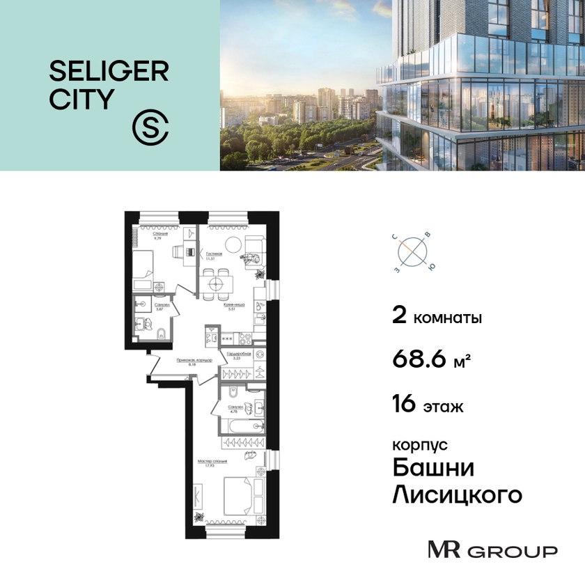Прямая продажа от застройщика. Продаётся 2-к квартира общей площадью 68.64 кв. м без отделки в ЖК «Селигер Сити» на 16-м этаже башни Лисицкого. Корпуса четвертой очереди ЖК «Селигер сити» названы в честь трех великих представителей науки и архитектуры, новаторское видение которых — слишком смелое для своего времени — нашло воплощение в уникальных домах жилого комплекса. Вдохновленные авангардными идеями знаменитого советского архитектора Эля Лисицкого, архитекторы создали яркий центр притяжения всего района, задающий новый стандарт жизни в современном мегаполисе — две высокие «Башни Лисицкого» с современной интерпретацией горизонтального небоскреба. Преимущества проекта: Первые три очереди сданы. • 2 минуты пешком от метро «Селигерская» • Архитектурное решение от голландского бюро MLA + • 8 корпусов разной этажности от 8 до 45 этажей • Одна из самых больших придомовых территорий в Москве — размером с 4 футбольных поля • Огороженная охраняемая территория, круглосуточное видеонаблюдение • Европейский подход к благоустройству от бюро WOWHaus: детские площадки для разных возрастов, спортивные площадки, площадки воркаута, дорожки для бега и пеших прогулок, скейтпарк, хоккейная площадка, площадка для выгула собак • Искусственный пруд на территории комплекса с благоустроенной набережной и мостом • Продуманная концепция инфраструктуры: уютные кафе и рестораны, супермаркет, магазин фермерских продуктов, бытовые службы, салон красоты, детские сады • Панорамные окна высотой до 2,5 м, в корпусах 3 очереди витражное остекление высотой до 4,2 м • Широкий выбор квартир — от компактных студий до просторных квартир с тремя спальнями и пентхаусов • Четыре вида дизайнерской отделки квартир от бюро Вlank Architects • Возможность купить квартиру с предчистовой отделкой white box • «Умный дом» на платформе Ujin. Система безопасности, вход на территорию и в подъезд по биометрии или BLE-метке, въезд в паркинг по считывателю номера, контроль климата. Все для комфортной жизни! • Лобби по индивидуальному дизайн проекту от европейского бюро Вlank Architects: лаунж-зоны, ресепшен, колясочная, помещение для мытья лап животным после прогулки • Подземный паркинг на 2189 машино-мест по индивидуальному дизайну, с зарядными устройствами для электромобилей, постами для подкачки шин и келлерами • Надежный девелопер с опытом премиальных проектов MR Group Расположение комплекса: • 2 минуты от станции метро «Селигерская» • 7 минут на машине до станции метро «Окружная» • Предусмотрен удобный выезд в сторону ТТК (всего 9 км или 15 минут без пробок) • МКАД в 10 минутах на машине Компания MR Group предлагает своим клиентам специальные условия приобретения квартир в рамках программ ипотечного кредитования от банков-партнеров.О застройщике
