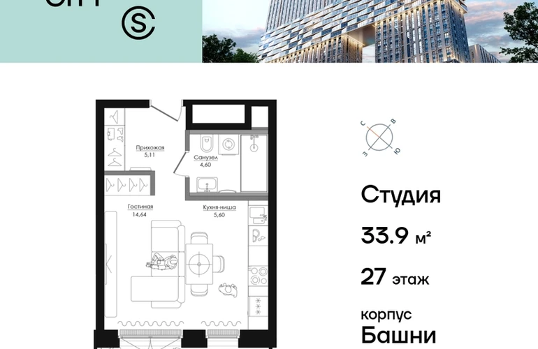 Прямая продажа от застройщика. Продаётся студия общей площадью 33.91 кв. м без отделки в ЖК «Селигер Сити» на 27-м этаже башни Лисицкого. Корпуса четвертой очереди ЖК «Селигер сити» названы в честь трех великих представителей науки и архитектуры, новаторское видение которых — слишком смелое для своего времени — нашло воплощение в уникальных домах жилого комплекса. Вдохновленные авангардными идеями знаменитого советского архитектора Эля Лисицкого, архитекторы создали яркий центр притяжения всего района, задающий новый стандарт жизни в современном мегаполисе — две высокие «Башни Лисицкого» с современной интерпретацией горизонтального небоскреба. Преимущества проекта: Первые три очереди сданы. • 2 минуты пешком от метро «Селигерская» • Архитектурное решение от голландского бюро MLA + • 8 корпусов разной этажности от 8 до 45 этажей • Одна из самых больших придомовых территорий в Москве — размером с 4 футбольных поля • Огороженная охраняемая территория, круглосуточное видеонаблюдение • Европейский подход к благоустройству от бюро WOWHaus: детские площадки для разных возрастов, спортивные площадки, площадки воркаута, дорожки для бега и пеших прогулок, скейтпарк, хоккейная площадка, площадка для выгула собак • Искусственный пруд на территории комплекса с благоустроенной набережной и мостом • Продуманная концепция инфраструктуры: уютные кафе и рестораны, супермаркет, магазин фермерских продуктов, бытовые службы, салон красоты, детские сады • Панорамные окна высотой до 2,5 м, в корпусах 3 очереди витражное остекление высотой до 4,2 м • Широкий выбор квартир — от компактных студий до просторных квартир с тремя спальнями и пентхаусов • Четыре вида дизайнерской отделки квартир от бюро Вlank Architects • Возможность купить квартиру с предчистовой отделкой white box • «Умный дом» на платформе Ujin. Система безопасности, вход на территорию и в подъезд по биометрии или BLE-метке, въезд в паркинг по считывателю номера, контроль климата. Все для комфортной жизни! • Лобби по индивидуальному дизайн проекту от европейского бюро Вlank Architects: лаунж-зоны, ресепшен, колясочная, помещение для мытья лап животным после прогулки • Подземный паркинг на 2189 машино-мест по индивидуальному дизайну, с зарядными устройствами для электромобилей, постами для подкачки шин и келлерами • Надежный девелопер с опытом премиальных проектов MR Group Расположение комплекса: • 2 минуты от станции метро «Селигерская» • 7 минут на машине до станции метро «Окружная» • Предусмотрен удобный выезд в сторону ТТК (всего 9 км или 15 минут без пробок) • МКАД в 10 минутах на машине Компания MR Group предлагает своим клиентам специальные условия приобретения квартир в рамках программ ипотечного кредитования от банков-партнеров.О застройщике