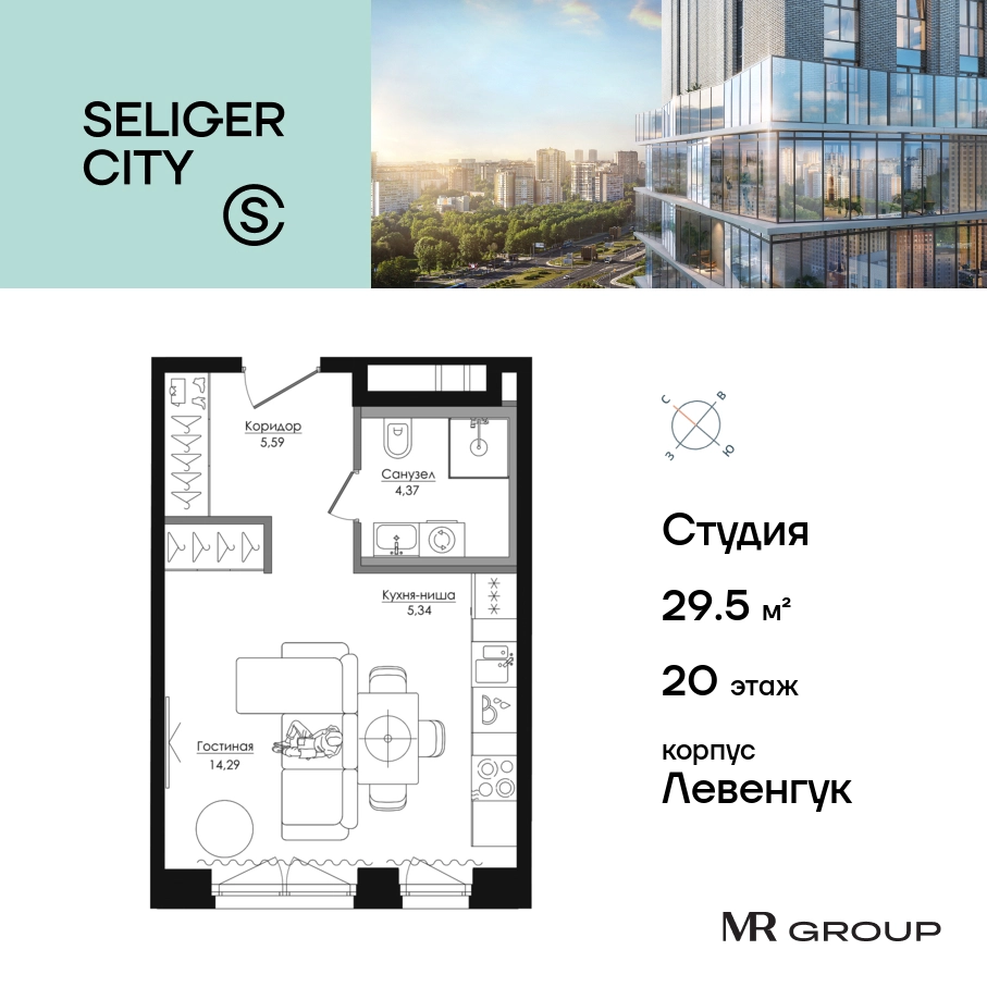 Прямая продажа от застройщика. Продаётся студия общей площадью 29.59 кв. м без отделки в ЖК «Селигер Сити» на 20-м этаже 21 этажного дома. Селигер Сити — это уютное пространство, где предусмотрена застройка разной этажности, чтобы каждый покупатель мог выбрать то, что ему по душе: невысокие дома или небоскребы, с верхних этажей которых будут открываться отличные виды на город. Преимущества проекта: Первые три очереди сданы. • 2 минуты пешком от метро «Селигерская» • Архитектурное решение от голландского бюро MLA + • 8 корпусов разной этажности от 8 до 45 этажей • Одна из самых больших придомовых территорий в Москве — размером с 4 футбольных поля • Огороженная охраняемая территория, круглосуточное видеонаблюдение • Европейский подход к благоустройству от бюро WOWHaus: детские площадки для разных возрастов, спортивные площадки, площадки воркаута, дорожки для бега и пеших прогулок, скейтпарк, хоккейная площадка, площадка для выгула собак • Искусственный пруд на территории комплекса с благоустроенной набережной и мостом • Продуманная концепция инфраструктуры: уютные кафе и рестораны, супермаркет, магазин фермерских продуктов, бытовые службы, салон красоты, детские сады • Панорамные окна высотой до 2,5 м, в корпусах 3 очереди витражное остекление высотой до 4,2 м • Широкий выбор квартир — от компактных студий до просторных квартир с тремя спальнями и пентхаусов • Четыре вида дизайнерской отделки квартир от бюро Вlank Architects • Возможность купить квартиру с предчистовой отделкой white box • «Умный дом» на платформе Ujin. Система безопасности, вход на территорию и в подъезд по биометрии или BLE-метке, въезд в паркинг по считывателю номера, контроль климата. Все для комфортной жизни! • Лобби по индивидуальному дизайн проекту от европейского бюро Вlank Architects: лаунж-зоны, ресепшен, колясочная, помещение для мытья лап животным после прогулки • Подземный паркинг на 2189 машино-мест по индивидуальному дизайну, с зарядными устройствами для электромобилей, постами для подкачки шин и келлерами • Надежный девелопер с опытом премиальных проектов MR Group Расположение комплекса: • 2 минуты от станции метро «Селигерская» • 7 минут на машине до станции метро «Окружная» • Предусмотрен удобный выезд в сторону ТТК (всего 9 км или 15 минут без пробок) • МКАД в 10 минутах на машине Компания MR Group предлагает своим клиентам специальные условия приобретения квартир в рамках программ ипотечного кредитования от банков-партнеров.О застройщике