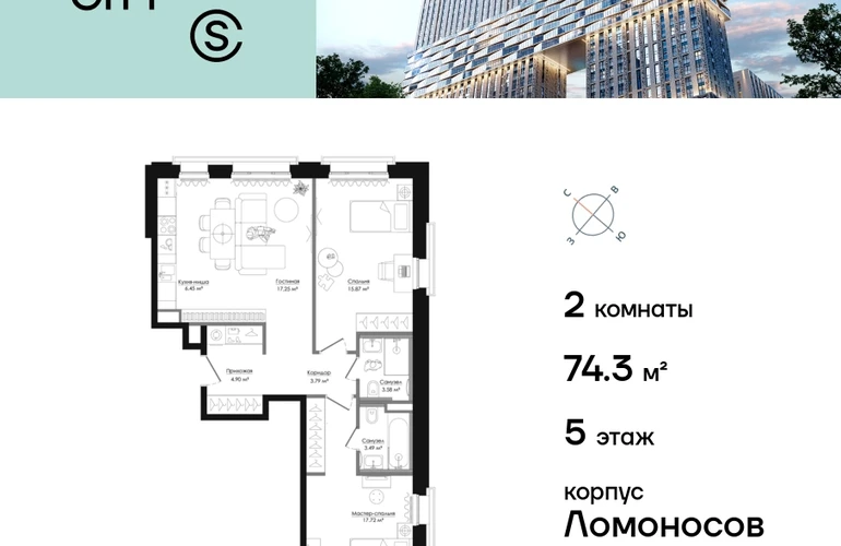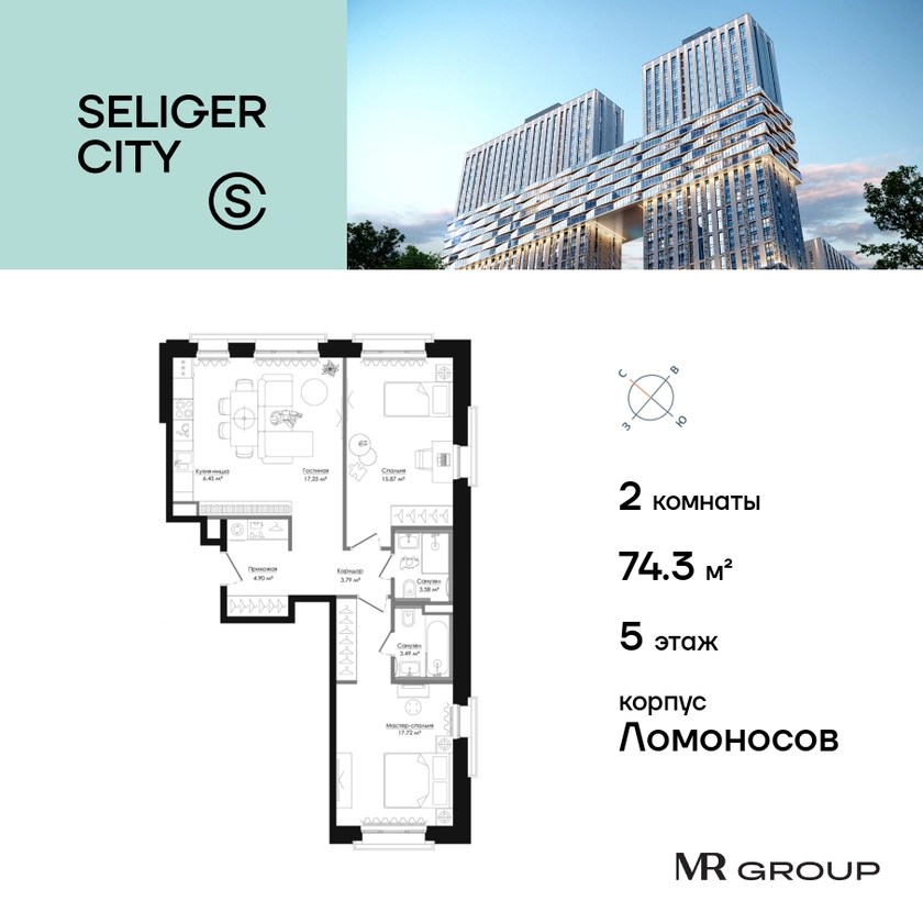 Прямая продажа от застройщика. Продаётся 2-к квартира общей площадью 74.38 кв. м без отделки в ЖК «Селигер Сити» на 5-м этаже корпуса Ломоносов. Корпуса четвертой очереди ЖК "Селигер сити" названы в честь трех великих представителей науки и архитектуры, новаторское видение которых слишком смелое для своего времени нашло воплощение в уникальных домах жилого комплекса. Клубный 15-этажный корпус Ломоносов расположен во дворе 4 очереди. Фасад корпуса выполнен из темного кирпича с контрастным первым этажом. Квартиры верхних этажей имеют панорамные окна и балконы с декоративным ограждением. Часть квартир на втором этаже имеют открытые террасы. На первом этаже дизайнерские интерьеры лобби выполненные по проекту бюро Вlank Architects. На жилых этажах не более 5 квартир. Преимущества проекта: • 2 минуты пешком от метро «Селигерская» • Архитектурное решение от голландского бюро MLA + • Одна из самых больших придомовых территорий в Москве • Огороженная охраняемая территория, круглосуточное видеонаблюдение • Европейский подход к благоустройству от бюро WOWHaus: появится парадный бульвар, аллея с фонтаном и арт-объектом, что дополнит уже сформированное благоустройство: детские площадки для разных возрастов, площадки для воркаута, дорожки для бега и пеших прогулок, места для отдыха • Искусственный пруд на территории комплекса с благоустроенной набережной и мостом • Продуманная концепция инфраструктуры: уютные кафе и рестораны, супермаркет, магазин фермерских продуктов, бытовые службы, салон красоты, детские сады • Ультрасовременные инженерные решения • Подземный паркинг с зарядными станциями для электромобилей, постами подкачки шин и келлерами • Лобби по индивидуальному дизайн проекту от европейского бюро Вlank Architects: лаунж-зоны, ресепшен, колясочная, помещение для мытья лап животным после прогулки • Надежный девелопер с опытом премиальных проектов MR Group Расположение комплекса: • 2 минуты от станции метро «Селигерская» • 7 минут на машине до станции метро «Окружная» • Предусмотрен удобный выезд в сторону ТТК (всего 9 км или 15 минут без пробок) • МКАД в 10 минутах на машине Компания MR Group предлагает своим клиентам специальные условия приобретения квартир в рамках программ ипотечного кредитования от банков-партнеров.О застройщике