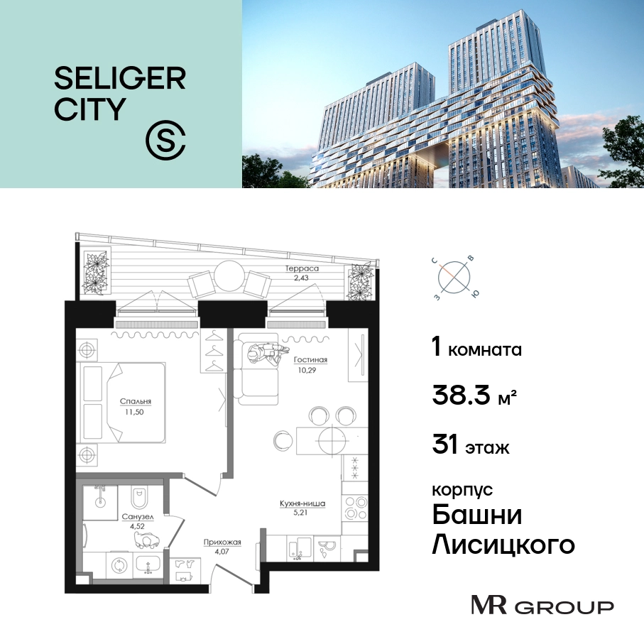 Прямая продажа от застройщика. Продаётся 1-к квартира общей площадью 38.38 кв. м без отделки в ЖК «Селигер Сити» на 31-м этаже башни Лисицкого. Корпуса четвертой очереди ЖК «Селигер сити» названы в честь трех великих представителей науки и архитектуры, новаторское видение которых — слишком смелое для своего времени — нашло воплощение в уникальных домах жилого комплекса. Вдохновленные авангардными идеями знаменитого советского архитектора Эля Лисицкого, архитекторы создали яркий центр притяжения всего района, задающий новый стандарт жизни в современном мегаполисе — две высокие «Башни Лисицкого» с современной интерпретацией горизонтального небоскреба. Преимущества проекта: Первые три очереди сданы. • 2 минуты пешком от метро «Селигерская» • Архитектурное решение от голландского бюро MLA + • 8 корпусов разной этажности от 8 до 45 этажей • Одна из самых больших придомовых территорий в Москве — размером с 4 футбольных поля • Огороженная охраняемая территория, круглосуточное видеонаблюдение • Европейский подход к благоустройству от бюро WOWHaus: детские площадки для разных возрастов, спортивные площадки, площадки воркаута, дорожки для бега и пеших прогулок, скейтпарк, хоккейная площадка, площадка для выгула собак • Искусственный пруд на территории комплекса с благоустроенной набережной и мостом • Продуманная концепция инфраструктуры: уютные кафе и рестораны, супермаркет, магазин фермерских продуктов, бытовые службы, салон красоты, детские сады • Панорамные окна высотой до 2,5 м, в корпусах 3 очереди витражное остекление высотой до 4,2 м • Широкий выбор квартир — от компактных студий до просторных квартир с тремя спальнями и пентхаусов • Четыре вида дизайнерской отделки квартир от бюро Вlank Architects • Возможность купить квартиру с предчистовой отделкой white box • «Умный дом» на платформе Ujin. Система безопасности, вход на территорию и в подъезд по биометрии или BLE-метке, въезд в паркинг по считывателю номера, контроль климата. Все для комфортной жизни! • Лобби по индивидуальному дизайн проекту от европейского бюро Вlank Architects: лаунж-зоны, ресепшен, колясочная, помещение для мытья лап животным после прогулки • Подземный паркинг на 2189 машино-мест по индивидуальному дизайну, с зарядными устройствами для электромобилей, постами для подкачки шин и келлерами • Надежный девелопер с опытом премиальных проектов MR Group Расположение комплекса: • 2 минуты от станции метро «Селигерская» • 7 минут на машине до станции метро «Окружная» • Предусмотрен удобный выезд в сторону ТТК (всего 9 км или 15 минут без пробок) • МКАД в 10 минутах на машине Компания MR Group предлагает своим клиентам специальные условия приобретения квартир в рамках программ ипотечного кредитования от банков-партнеров.О застройщике