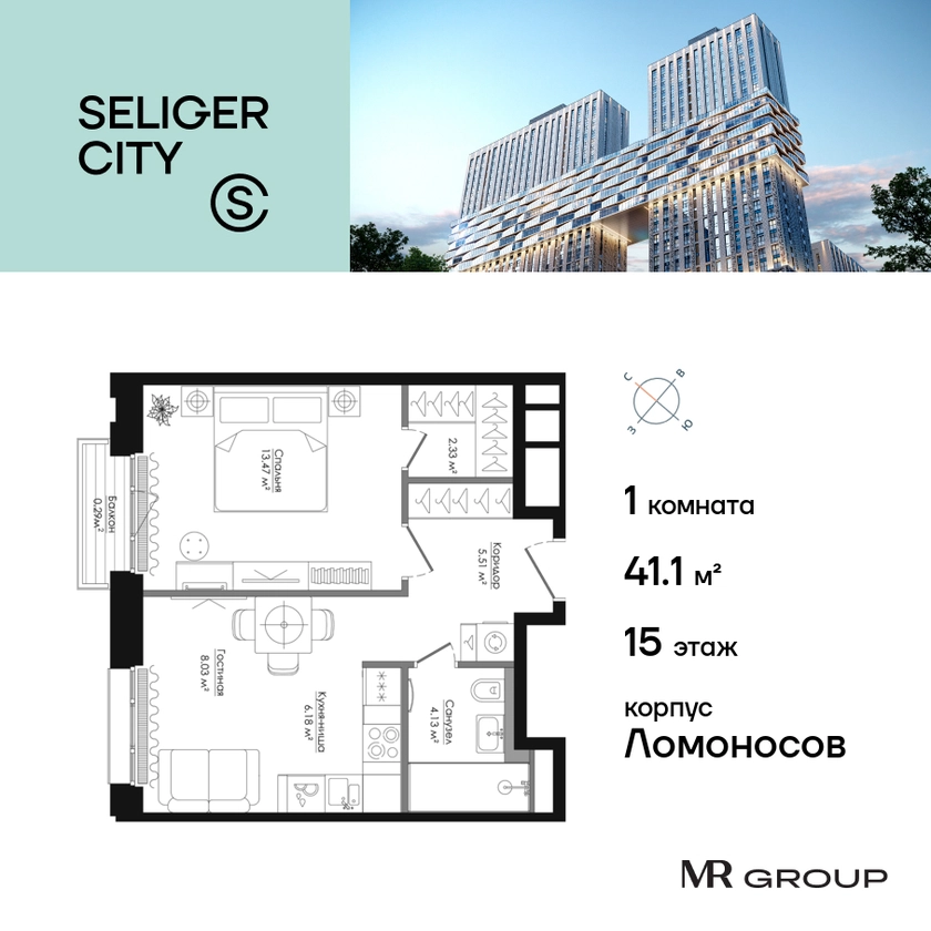 Прямая продажа от застройщика. Продаётся 1-к квартира общей площадью 41.10 кв. м без отделки в ЖК «Селигер Сити» на 15-м этаже корпуса Ломоносов. Корпуса четвертой очереди ЖК "Селигер сити" названы в честь трех великих представителей науки и архитектуры, новаторское видение которых слишком смелое для своего времени нашло воплощение в уникальных домах жилого комплекса. Клубный 15-этажный корпус Ломоносов расположен во дворе 4 очереди. Фасад корпуса выполнен из темного кирпича с контрастным первым этажом. Квартиры верхних этажей имеют панорамные окна и балконы с декоративным ограждением. Часть квартир на втором этаже имеют открытые террасы. На первом этаже дизайнерские интерьеры лобби выполненные по проекту бюро Вlank Architects. На жилых этажах не более 5 квартир. Преимущества проекта: • 2 минуты пешком от метро «Селигерская» • Архитектурное решение от голландского бюро MLA + • Одна из самых больших придомовых территорий в Москве • Огороженная охраняемая территория, круглосуточное видеонаблюдение • Европейский подход к благоустройству от бюро WOWHaus: появится парадный бульвар, аллея с фонтаном и арт-объектом, что дополнит уже сформированное благоустройство: детские площадки для разных возрастов, площадки для воркаута, дорожки для бега и пеших прогулок, места для отдыха • Искусственный пруд на территории комплекса с благоустроенной набережной и мостом • Продуманная концепция инфраструктуры: уютные кафе и рестораны, супермаркет, магазин фермерских продуктов, бытовые службы, салон красоты, детские сады • Ультрасовременные инженерные решения • Подземный паркинг с зарядными станциями для электромобилей, постами подкачки шин и келлерами • Лобби по индивидуальному дизайн проекту от европейского бюро Вlank Architects: лаунж-зоны, ресепшен, колясочная, помещение для мытья лап животным после прогулки • Надежный девелопер с опытом премиальных проектов MR Group Расположение комплекса: • 2 минуты от станции метро «Селигерская» • 7 минут на машине до станции метро «Окружная» • Предусмотрен удобный выезд в сторону ТТК (всего 9 км или 15 минут без пробок) • МКАД в 10 минутах на машине Компания MR Group предлагает своим клиентам специальные условия приобретения квартир в рамках программ ипотечного кредитования от банков-партнеров.О застройщике