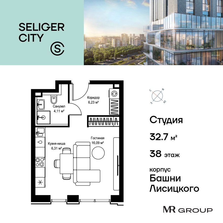 Прямая продажа от застройщика. Продаётся студия общей площадью 32.74 кв. м без отделки в ЖК «Селигер Сити» на 38-м этаже башни Лисицкого. Корпуса четвертой очереди ЖК «Селигер сити» названы в честь трех великих представителей науки и архитектуры, новаторское видение которых — слишком смелое для своего времени — нашло воплощение в уникальных домах жилого комплекса. Вдохновленные авангардными идеями знаменитого советского архитектора Эля Лисицкого, архитекторы создали яркий центр притяжения всего района, задающий новый стандарт жизни в современном мегаполисе — две высокие «Башни Лисицкого» с современной интерпретацией горизонтального небоскреба. Преимущества проекта: Первые три очереди сданы. • 2 минуты пешком от метро «Селигерская» • Архитектурное решение от голландского бюро MLA + • 8 корпусов разной этажности от 8 до 45 этажей • Одна из самых больших придомовых территорий в Москве — размером с 4 футбольных поля • Огороженная охраняемая территория, круглосуточное видеонаблюдение • Европейский подход к благоустройству от бюро WOWHaus: детские площадки для разных возрастов, спортивные площадки, площадки воркаута, дорожки для бега и пеших прогулок, скейтпарк, хоккейная площадка, площадка для выгула собак • Искусственный пруд на территории комплекса с благоустроенной набережной и мостом • Продуманная концепция инфраструктуры: уютные кафе и рестораны, супермаркет, магазин фермерских продуктов, бытовые службы, салон красоты, детские сады • Панорамные окна высотой до 2,5 м, в корпусах 3 очереди витражное остекление высотой до 4,2 м • Широкий выбор квартир — от компактных студий до просторных квартир с тремя спальнями и пентхаусов • Четыре вида дизайнерской отделки квартир от бюро Вlank Architects • Возможность купить квартиру с предчистовой отделкой white box • «Умный дом» на платформе Ujin. Система безопасности, вход на территорию и в подъезд по биометрии или BLE-метке, въезд в паркинг по считывателю номера, контроль климата. Все для комфортной жизни! • Лобби по индивидуальному дизайн проекту от европейского бюро Вlank Architects: лаунж-зоны, ресепшен, колясочная, помещение для мытья лап животным после прогулки • Подземный паркинг на 2189 машино-мест по индивидуальному дизайну, с зарядными устройствами для электромобилей, постами для подкачки шин и келлерами • Надежный девелопер с опытом премиальных проектов MR Group Расположение комплекса: • 2 минуты от станции метро «Селигерская» • 7 минут на машине до станции метро «Окружная» • Предусмотрен удобный выезд в сторону ТТК (всего 9 км или 15 минут без пробок) • МКАД в 10 минутах на машине Компания MR Group предлагает своим клиентам специальные условия приобретения квартир в рамках программ ипотечного кредитования от банков-партнеров.О застройщике