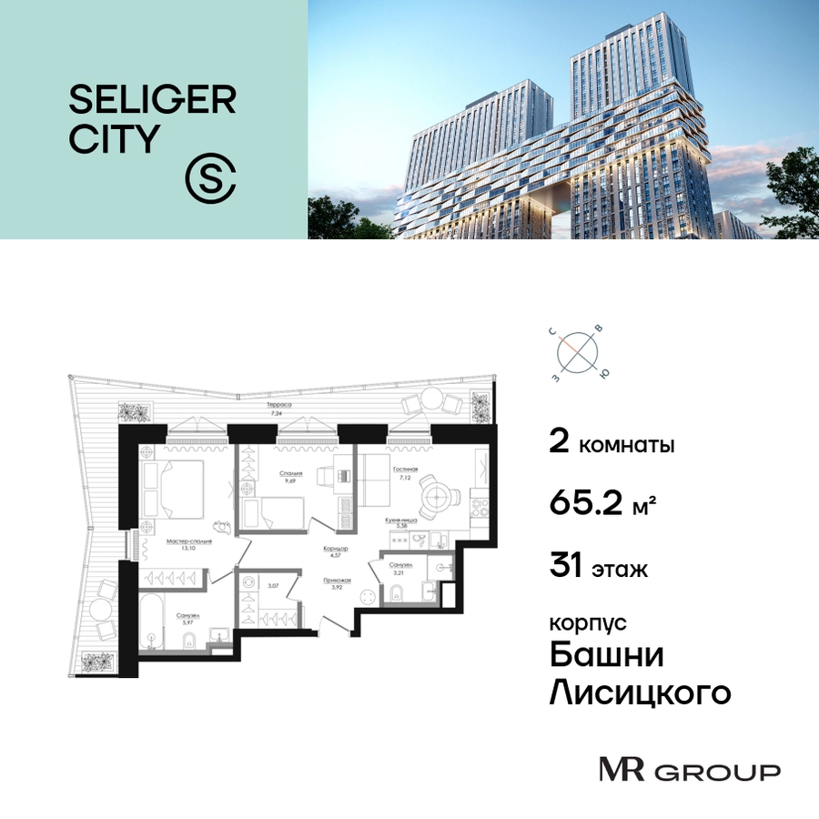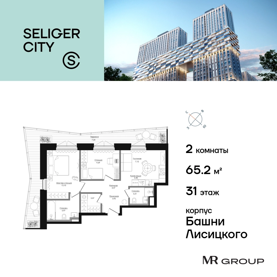 Прямая продажа от застройщика. Продаётся 2-к квартира общей площадью 65.29 кв. м без отделки в ЖК «Селигер Сити» на 31-м этаже башни Лисицкого. Корпуса четвертой очереди ЖК «Селигер сити» названы в честь трех великих представителей науки и архитектуры, новаторское видение которых — слишком смелое для своего времени — нашло воплощение в уникальных домах жилого комплекса. Вдохновленные авангардными идеями знаменитого советского архитектора Эля Лисицкого, архитекторы создали яркий центр притяжения всего района, задающий новый стандарт жизни в современном мегаполисе — две высокие «Башни Лисицкого» с современной интерпретацией горизонтального небоскреба. Преимущества проекта: Первые три очереди сданы. • 2 минуты пешком от метро «Селигерская» • Архитектурное решение от голландского бюро MLA + • 8 корпусов разной этажности от 8 до 45 этажей • Одна из самых больших придомовых территорий в Москве — размером с 4 футбольных поля • Огороженная охраняемая территория, круглосуточное видеонаблюдение • Европейский подход к благоустройству от бюро WOWHaus: детские площадки для разных возрастов, спортивные площадки, площадки воркаута, дорожки для бега и пеших прогулок, скейтпарк, хоккейная площадка, площадка для выгула собак • Искусственный пруд на территории комплекса с благоустроенной набережной и мостом • Продуманная концепция инфраструктуры: уютные кафе и рестораны, супермаркет, магазин фермерских продуктов, бытовые службы, салон красоты, детские сады • Панорамные окна высотой до 2,5 м, в корпусах 3 очереди витражное остекление высотой до 4,2 м • Широкий выбор квартир — от компактных студий до просторных квартир с тремя спальнями и пентхаусов • Четыре вида дизайнерской отделки квартир от бюро Вlank Architects • Возможность купить квартиру с предчистовой отделкой white box • «Умный дом» на платформе Ujin. Система безопасности, вход на территорию и в подъезд по биометрии или BLE-метке, въезд в паркинг по считывателю номера, контроль климата. Все для комфортной жизни! • Лобби по индивидуальному дизайн проекту от европейского бюро Вlank Architects: лаунж-зоны, ресепшен, колясочная, помещение для мытья лап животным после прогулки • Подземный паркинг на 2189 машино-мест по индивидуальному дизайну, с зарядными устройствами для электромобилей, постами для подкачки шин и келлерами • Надежный девелопер с опытом премиальных проектов MR Group Расположение комплекса: • 2 минуты от станции метро «Селигерская» • 7 минут на машине до станции метро «Окружная» • Предусмотрен удобный выезд в сторону ТТК (всего 9 км или 15 минут без пробок) • МКАД в 10 минутах на машине Компания MR Group предлагает своим клиентам специальные условия приобретения квартир в рамках программ ипотечного кредитования от банков-партнеров.О застройщике