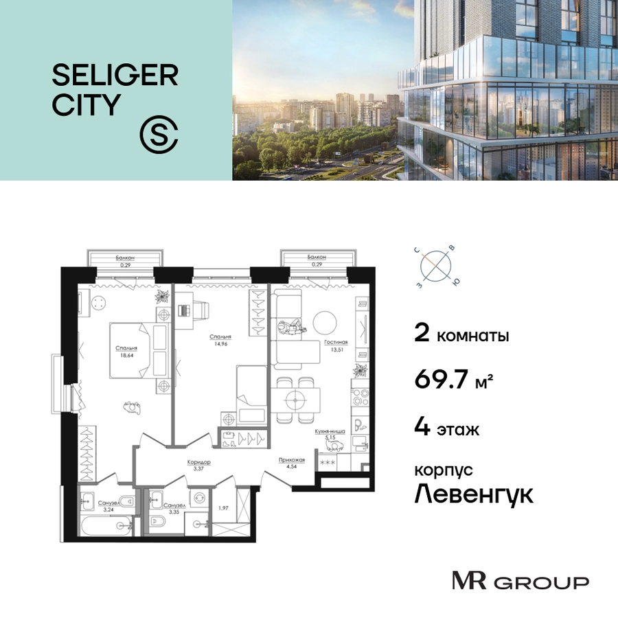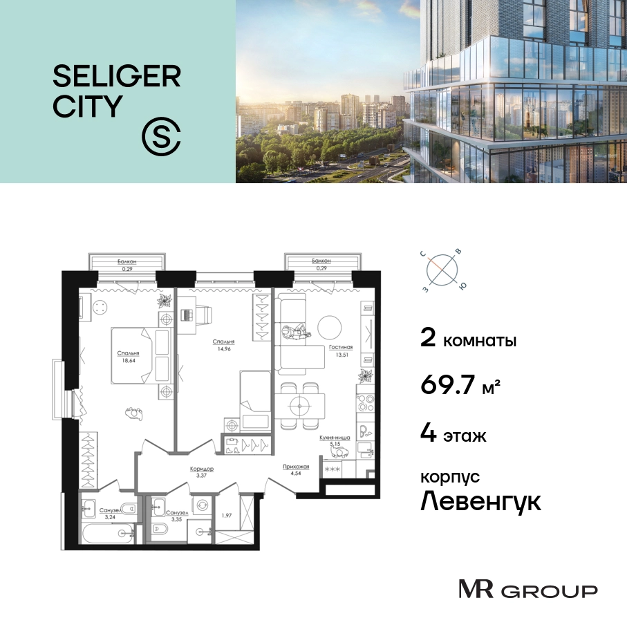 Прямая продажа от застройщика. Продаётся 2-к квартира общей площадью 69.77 кв. м без отделки в ЖК «Селигер Сити» на 4-м этаже 21 этажного дома. Селигер Сити — это уютное пространство, где предусмотрена застройка разной этажности, чтобы каждый покупатель мог выбрать то, что ему по душе: невысокие дома или небоскребы, с верхних этажей которых будут открываться отличные виды на город. Преимущества проекта: Первые три очереди сданы. • 2 минуты пешком от метро «Селигерская» • Архитектурное решение от голландского бюро MLA + • 8 корпусов разной этажности от 8 до 45 этажей • Одна из самых больших придомовых территорий в Москве — размером с 4 футбольных поля • Огороженная охраняемая территория, круглосуточное видеонаблюдение • Европейский подход к благоустройству от бюро WOWHaus: детские площадки для разных возрастов, спортивные площадки, площадки воркаута, дорожки для бега и пеших прогулок, скейтпарк, хоккейная площадка, площадка для выгула собак • Искусственный пруд на территории комплекса с благоустроенной набережной и мостом • Продуманная концепция инфраструктуры: уютные кафе и рестораны, супермаркет, магазин фермерских продуктов, бытовые службы, салон красоты, детские сады • Панорамные окна высотой до 2,5 м, в корпусах 3 очереди витражное остекление высотой до 4,2 м • Широкий выбор квартир — от компактных студий до просторных квартир с тремя спальнями и пентхаусов • Четыре вида дизайнерской отделки квартир от бюро Вlank Architects • Возможность купить квартиру с предчистовой отделкой white box • «Умный дом» на платформе Ujin. Система безопасности, вход на территорию и в подъезд по биометрии или BLE-метке, въезд в паркинг по считывателю номера, контроль климата. Все для комфортной жизни! • Лобби по индивидуальному дизайн проекту от европейского бюро Вlank Architects: лаунж-зоны, ресепшен, колясочная, помещение для мытья лап животным после прогулки • Подземный паркинг на 2189 машино-мест по индивидуальному дизайну, с зарядными устройствами для электромобилей, постами для подкачки шин и келлерами • Надежный девелопер с опытом премиальных проектов MR Group Расположение комплекса: • 2 минуты от станции метро «Селигерская» • 7 минут на машине до станции метро «Окружная» • Предусмотрен удобный выезд в сторону ТТК (всего 9 км или 15 минут без пробок) • МКАД в 10 минутах на машине Компания MR Group предлагает своим клиентам специальные условия приобретения квартир в рамках программ ипотечного кредитования от банков-партнеров.О застройщике