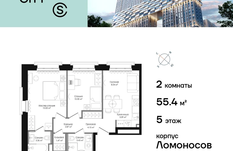 Прямая продажа от застройщика. Продаётся 2-к квартира общей площадью 55.45 кв. м без отделки в ЖК «Селигер Сити» на 5-м этаже корпуса Ломоносов. Корпуса четвертой очереди ЖК "Селигер сити" названы в честь трех великих представителей науки и архитектуры, новаторское видение которых слишком смелое для своего времени нашло воплощение в уникальных домах жилого комплекса. Клубный 15-этажный корпус Ломоносов расположен во дворе 4 очереди. Фасад корпуса выполнен из темного кирпича с контрастным первым этажом. Квартиры верхних этажей имеют панорамные окна и балконы с декоративным ограждением. Часть квартир на втором этаже имеют открытые террасы. На первом этаже дизайнерские интерьеры лобби выполненные по проекту бюро Вlank Architects. На жилых этажах не более 5 квартир. Преимущества проекта: • 2 минуты пешком от метро «Селигерская» • Архитектурное решение от голландского бюро MLA + • Одна из самых больших придомовых территорий в Москве • Огороженная охраняемая территория, круглосуточное видеонаблюдение • Европейский подход к благоустройству от бюро WOWHaus: появится парадный бульвар, аллея с фонтаном и арт-объектом, что дополнит уже сформированное благоустройство: детские площадки для разных возрастов, площадки для воркаута, дорожки для бега и пеших прогулок, места для отдыха • Искусственный пруд на территории комплекса с благоустроенной набережной и мостом • Продуманная концепция инфраструктуры: уютные кафе и рестораны, супермаркет, магазин фермерских продуктов, бытовые службы, салон красоты, детские сады • Ультрасовременные инженерные решения • Подземный паркинг с зарядными станциями для электромобилей, постами подкачки шин и келлерами • Лобби по индивидуальному дизайн проекту от европейского бюро Вlank Architects: лаунж-зоны, ресепшен, колясочная, помещение для мытья лап животным после прогулки • Надежный девелопер с опытом премиальных проектов MR Group Расположение комплекса: • 2 минуты от станции метро «Селигерская» • 7 минут на машине до станции метро «Окружная» • Предусмотрен удобный выезд в сторону ТТК (всего 9 км или 15 минут без пробок) • МКАД в 10 минутах на машине Компания MR Group предлагает своим клиентам специальные условия приобретения квартир в рамках программ ипотечного кредитования от банков-партнеров.О застройщике