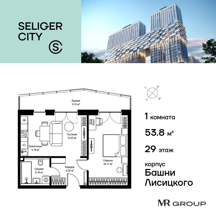 Прямая продажа от застройщика. Продаётся 1-к квартира общей площадью 53.82 кв. м с предчистовой отделкой в ЖК «Селигер Сити» на 29-м этаже башни Лисицкого. Корпуса четвертой очереди ЖК «Селигер сити» названы в честь трех великих представителей науки и архитектуры, новаторское видение которых — слишком смелое для своего времени — нашло воплощение в уникальных домах жилого комплекса. Вдохновленные авангардными идеями знаменитого советского архитектора Эля Лисицкого, архитекторы создали яркий центр притяжения всего района, задающий новый стандарт жизни в современном мегаполисе — две высокие «Башни Лисицкого» с современной интерпретацией горизонтального небоскреба. Преимущества проекта: Первые три очереди сданы. • 2 минуты пешком от метро «Селигерская» • Архитектурное решение от голландского бюро MLA + • 8 корпусов разной этажности от 8 до 45 этажей • Одна из самых больших придомовых территорий в Москве — размером с 4 футбольных поля • Огороженная охраняемая территория, круглосуточное видеонаблюдение • Европейский подход к благоустройству от бюро WOWHaus: детские площадки для разных возрастов, спортивные площадки, площадки воркаута, дорожки для бега и пеших прогулок, скейтпарк, хоккейная площадка, площадка для выгула собак • Искусственный пруд на территории комплекса с благоустроенной набережной и мостом • Продуманная концепция инфраструктуры: уютные кафе и рестораны, супермаркет, магазин фермерских продуктов, бытовые службы, салон красоты, детские сады • Панорамные окна высотой до 2,5 м, в корпусах 3 очереди витражное остекление высотой до 4,2 м • Широкий выбор квартир — от компактных студий до просторных квартир с тремя спальнями и пентхаусов • Четыре вида дизайнерской отделки квартир от бюро Вlank Architects • Возможность купить квартиру с предчистовой отделкой white box • «Умный дом» на платформе Ujin. Система безопасности, вход на территорию и в подъезд по биометрии или BLE-метке, въезд в паркинг по считывателю номера, контроль климата. Все для комфортной жизни! • Лобби по индивидуальному дизайн проекту от европейского бюро Вlank Architects: лаунж-зоны, ресепшен, колясочная, помещение для мытья лап животным после прогулки • Подземный паркинг на 2189 машино-мест по индивидуальному дизайну, с зарядными устройствами для электромобилей, постами для подкачки шин и келлерами • Надежный девелопер с опытом премиальных проектов MR Group Расположение комплекса: • 2 минуты от станции метро «Селигерская» • 7 минут на машине до станции метро «Окружная» • Предусмотрен удобный выезд в сторону ТТК (всего 9 км или 15 минут без пробок) • МКАД в 10 минутах на машине Компания MR Group предлагает своим клиентам специальные условия приобретения квартир в рамках программ ипотечного кредитования от банков-партнеров.О застройщике