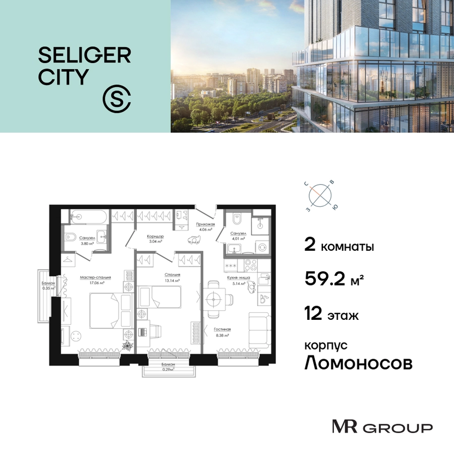 Прямая продажа от застройщика. Продаётся 2-к квартира общей площадью 59.89 кв. м с предчистовой отделкой в ЖК «Селигер Сити» на 12-м этаже корпуса Ломоносов. Корпуса четвертой очереди ЖК "Селигер сити" названы в честь трех великих представителей науки и архитектуры, новаторское видение которых слишком смелое для своего времени нашло воплощение в уникальных домах жилого комплекса. Клубный 15-этажный корпус Ломоносов расположен во дворе 4 очереди. Фасад корпуса выполнен из темного кирпича с контрастным первым этажом. Квартиры верхних этажей имеют панорамные окна и балконы с декоративным ограждением. Часть квартир на втором этаже имеют открытые террасы. На первом этаже дизайнерские интерьеры лобби выполненные по проекту бюро Вlank Architects. На жилых этажах не более 5 квартир. Преимущества проекта: • 2 минуты пешком от метро «Селигерская» • Архитектурное решение от голландского бюро MLA + • Одна из самых больших придомовых территорий в Москве • Огороженная охраняемая территория, круглосуточное видеонаблюдение • Европейский подход к благоустройству от бюро WOWHaus: появится парадный бульвар, аллея с фонтаном и арт-объектом, что дополнит уже сформированное благоустройство: детские площадки для разных возрастов, площадки для воркаута, дорожки для бега и пеших прогулок, места для отдыха • Искусственный пруд на территории комплекса с благоустроенной набережной и мостом • Продуманная концепция инфраструктуры: уютные кафе и рестораны, супермаркет, магазин фермерских продуктов, бытовые службы, салон красоты, детские сады • Ультрасовременные инженерные решения • Подземный паркинг с зарядными станциями для электромобилей, постами подкачки шин и келлерами • Лобби по индивидуальному дизайн проекту от европейского бюро Вlank Architects: лаунж-зоны, ресепшен, колясочная, помещение для мытья лап животным после прогулки • Надежный девелопер с опытом премиальных проектов MR Group Расположение комплекса: • 2 минуты от станции метро «Селигерская» • 7 минут на машине до станции метро «Окружная» • Предусмотрен удобный выезд в сторону ТТК (всего 9 км или 15 минут без пробок) • МКАД в 10 минутах на машине Компания MR Group предлагает своим клиентам специальные условия приобретения квартир в рамках программ ипотечного кредитования от банков-партнеров.О застройщике