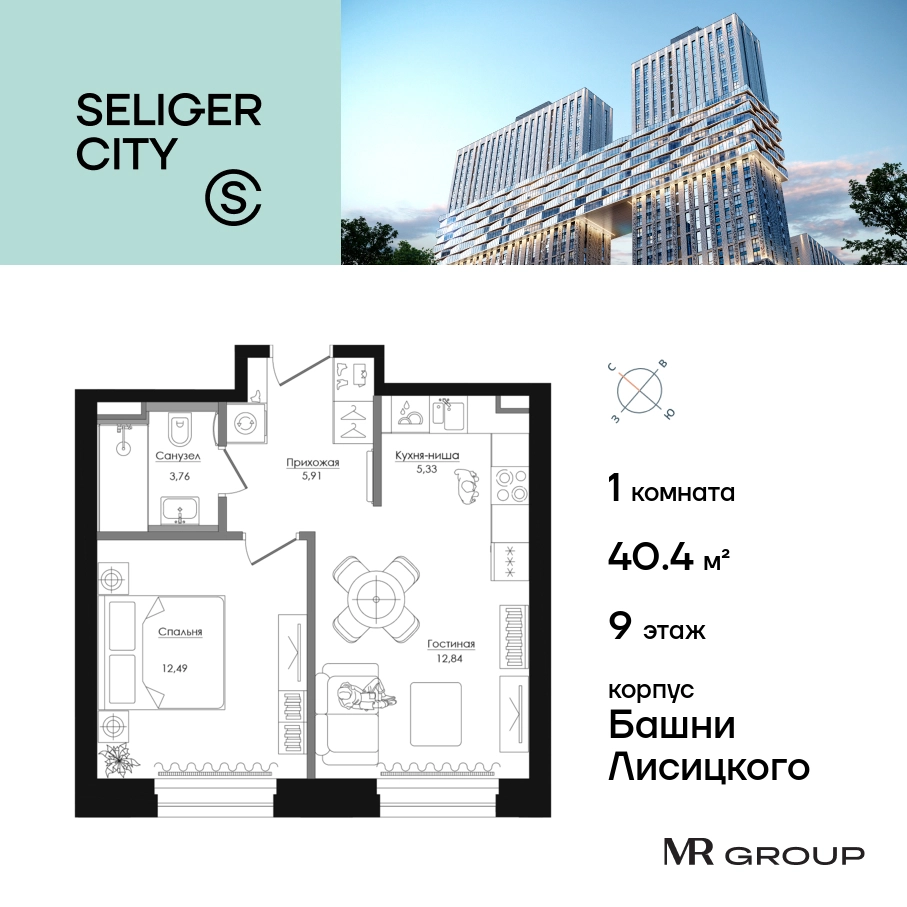 Прямая продажа от застройщика. Продаётся 1-к квартира общей площадью 40.42 кв. м с предчистовой отделкой в ЖК «Селигер Сити» на 9-м этаже башни Лисицкого. Корпуса четвертой очереди ЖК «Селигер сити» названы в честь трех великих представителей науки и архитектуры, новаторское видение которых — слишком смелое для своего времени — нашло воплощение в уникальных домах жилого комплекса. Вдохновленные авангардными идеями знаменитого советского архитектора Эля Лисицкого, архитекторы создали яркий центр притяжения всего района, задающий новый стандарт жизни в современном мегаполисе — две высокие «Башни Лисицкого» с современной интерпретацией горизонтального небоскреба. Преимущества проекта: Первые три очереди сданы. • 2 минуты пешком от метро «Селигерская» • Архитектурное решение от голландского бюро MLA + • 8 корпусов разной этажности от 8 до 45 этажей • Одна из самых больших придомовых территорий в Москве — размером с 4 футбольных поля • Огороженная охраняемая территория, круглосуточное видеонаблюдение • Европейский подход к благоустройству от бюро WOWHaus: детские площадки для разных возрастов, спортивные площадки, площадки воркаута, дорожки для бега и пеших прогулок, скейтпарк, хоккейная площадка, площадка для выгула собак • Искусственный пруд на территории комплекса с благоустроенной набережной и мостом • Продуманная концепция инфраструктуры: уютные кафе и рестораны, супермаркет, магазин фермерских продуктов, бытовые службы, салон красоты, детские сады • Панорамные окна высотой до 2,5 м, в корпусах 3 очереди витражное остекление высотой до 4,2 м • Широкий выбор квартир — от компактных студий до просторных квартир с тремя спальнями и пентхаусов • Четыре вида дизайнерской отделки квартир от бюро Вlank Architects • Возможность купить квартиру с предчистовой отделкой white box • «Умный дом» на платформе Ujin. Система безопасности, вход на территорию и в подъезд по биометрии или BLE-метке, въезд в паркинг по считывателю номера, контроль климата. Все для комфортной жизни! • Лобби по индивидуальному дизайн проекту от европейского бюро Вlank Architects: лаунж-зоны, ресепшен, колясочная, помещение для мытья лап животным после прогулки • Подземный паркинг на 2189 машино-мест по индивидуальному дизайну, с зарядными устройствами для электромобилей, постами для подкачки шин и келлерами • Надежный девелопер с опытом премиальных проектов MR Group Расположение комплекса: • 2 минуты от станции метро «Селигерская» • 7 минут на машине до станции метро «Окружная» • Предусмотрен удобный выезд в сторону ТТК (всего 9 км или 15 минут без пробок) • МКАД в 10 минутах на машине Компания MR Group предлагает своим клиентам специальные условия приобретения квартир в рамках программ ипотечного кредитования от банков-партнеров.О застройщике