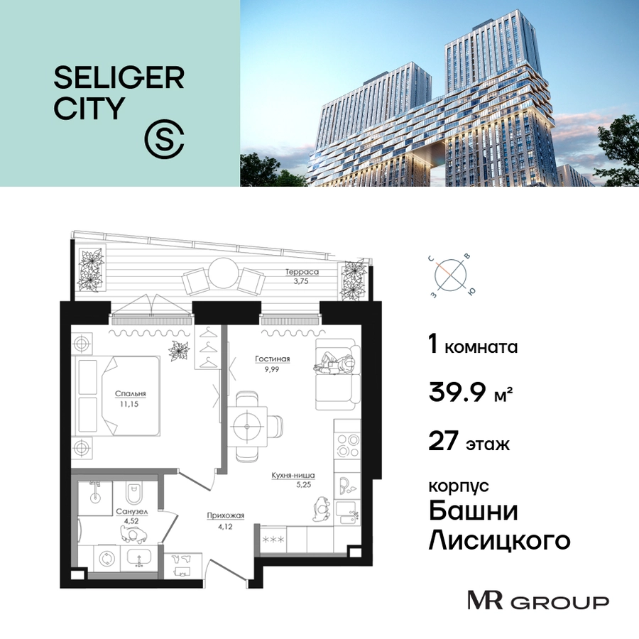 Прямая продажа от застройщика. Продаётся 1-к квартира общей площадью 39.94 кв. м без отделки в ЖК «Селигер Сити» на 27-м этаже башни Лисицкого. Корпуса четвертой очереди ЖК «Селигер сити» названы в честь трех великих представителей науки и архитектуры, новаторское видение которых — слишком смелое для своего времени — нашло воплощение в уникальных домах жилого комплекса. Вдохновленные авангардными идеями знаменитого советского архитектора Эля Лисицкого, архитекторы создали яркий центр притяжения всего района, задающий новый стандарт жизни в современном мегаполисе — две высокие «Башни Лисицкого» с современной интерпретацией горизонтального небоскреба. Преимущества проекта: Первые три очереди сданы. • 2 минуты пешком от метро «Селигерская» • Архитектурное решение от голландского бюро MLA + • 8 корпусов разной этажности от 8 до 45 этажей • Одна из самых больших придомовых территорий в Москве — размером с 4 футбольных поля • Огороженная охраняемая территория, круглосуточное видеонаблюдение • Европейский подход к благоустройству от бюро WOWHaus: детские площадки для разных возрастов, спортивные площадки, площадки воркаута, дорожки для бега и пеших прогулок, скейтпарк, хоккейная площадка, площадка для выгула собак • Искусственный пруд на территории комплекса с благоустроенной набережной и мостом • Продуманная концепция инфраструктуры: уютные кафе и рестораны, супермаркет, магазин фермерских продуктов, бытовые службы, салон красоты, детские сады • Панорамные окна высотой до 2,5 м, в корпусах 3 очереди витражное остекление высотой до 4,2 м • Широкий выбор квартир — от компактных студий до просторных квартир с тремя спальнями и пентхаусов • Четыре вида дизайнерской отделки квартир от бюро Вlank Architects • Возможность купить квартиру с предчистовой отделкой white box • «Умный дом» на платформе Ujin. Система безопасности, вход на территорию и в подъезд по биометрии или BLE-метке, въезд в паркинг по считывателю номера, контроль климата. Все для комфортной жизни! • Лобби по индивидуальному дизайн проекту от европейского бюро Вlank Architects: лаунж-зоны, ресепшен, колясочная, помещение для мытья лап животным после прогулки • Подземный паркинг на 2189 машино-мест по индивидуальному дизайну, с зарядными устройствами для электромобилей, постами для подкачки шин и келлерами • Надежный девелопер с опытом премиальных проектов MR Group Расположение комплекса: • 2 минуты от станции метро «Селигерская» • 7 минут на машине до станции метро «Окружная» • Предусмотрен удобный выезд в сторону ТТК (всего 9 км или 15 минут без пробок) • МКАД в 10 минутах на машине Компания MR Group предлагает своим клиентам специальные условия приобретения квартир в рамках программ ипотечного кредитования от банков-партнеров.О застройщике