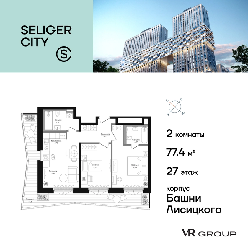 Прямая продажа от застройщика. Продаётся 2-к квартира общей площадью 77.43 кв. м без отделки в ЖК «Селигер Сити» на 27-м этаже башни Лисицкого. Корпуса четвертой очереди ЖК «Селигер сити» названы в честь трех великих представителей науки и архитектуры, новаторское видение которых — слишком смелое для своего времени — нашло воплощение в уникальных домах жилого комплекса. Вдохновленные авангардными идеями знаменитого советского архитектора Эля Лисицкого, архитекторы создали яркий центр притяжения всего района, задающий новый стандарт жизни в современном мегаполисе — две высокие «Башни Лисицкого» с современной интерпретацией горизонтального небоскреба. Преимущества проекта: Первые три очереди сданы. • 2 минуты пешком от метро «Селигерская» • Архитектурное решение от голландского бюро MLA + • 8 корпусов разной этажности от 8 до 45 этажей • Одна из самых больших придомовых территорий в Москве — размером с 4 футбольных поля • Огороженная охраняемая территория, круглосуточное видеонаблюдение • Европейский подход к благоустройству от бюро WOWHaus: детские площадки для разных возрастов, спортивные площадки, площадки воркаута, дорожки для бега и пеших прогулок, скейтпарк, хоккейная площадка, площадка для выгула собак • Искусственный пруд на территории комплекса с благоустроенной набережной и мостом • Продуманная концепция инфраструктуры: уютные кафе и рестораны, супермаркет, магазин фермерских продуктов, бытовые службы, салон красоты, детские сады • Панорамные окна высотой до 2,5 м, в корпусах 3 очереди витражное остекление высотой до 4,2 м • Широкий выбор квартир — от компактных студий до просторных квартир с тремя спальнями и пентхаусов • Четыре вида дизайнерской отделки квартир от бюро Вlank Architects • Возможность купить квартиру с предчистовой отделкой white box • «Умный дом» на платформе Ujin. Система безопасности, вход на территорию и в подъезд по биометрии или BLE-метке, въезд в паркинг по считывателю номера, контроль климата. Все для комфортной жизни! • Лобби по индивидуальному дизайн проекту от европейского бюро Вlank Architects: лаунж-зоны, ресепшен, колясочная, помещение для мытья лап животным после прогулки • Подземный паркинг на 2189 машино-мест по индивидуальному дизайну, с зарядными устройствами для электромобилей, постами для подкачки шин и келлерами • Надежный девелопер с опытом премиальных проектов MR Group Расположение комплекса: • 2 минуты от станции метро «Селигерская» • 7 минут на машине до станции метро «Окружная» • Предусмотрен удобный выезд в сторону ТТК (всего 9 км или 15 минут без пробок) • МКАД в 10 минутах на машине Компания MR Group предлагает своим клиентам специальные условия приобретения квартир в рамках программ ипотечного кредитования от банков-партнеров.О застройщике