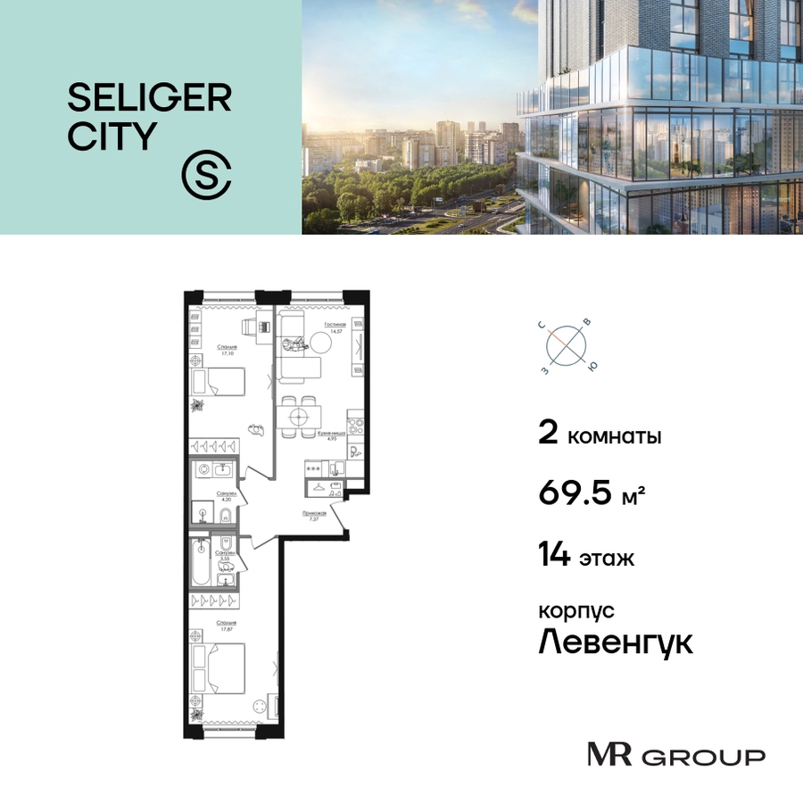 Прямая продажа от застройщика. Продаётся 2-к квартира общей площадью 69.62 кв. м без отделки в ЖК «Селигер Сити» на 14-м этаже 21 этажного дома. Селигер Сити — это уютное пространство, где предусмотрена застройка разной этажности, чтобы каждый покупатель мог выбрать то, что ему по душе: невысокие дома или небоскребы, с верхних этажей которых будут открываться отличные виды на город. Преимущества проекта: Первые три очереди сданы. • 2 минуты пешком от метро «Селигерская» • Архитектурное решение от голландского бюро MLA + • 8 корпусов разной этажности от 8 до 45 этажей • Одна из самых больших придомовых территорий в Москве — размером с 4 футбольных поля • Огороженная охраняемая территория, круглосуточное видеонаблюдение • Европейский подход к благоустройству от бюро WOWHaus: детские площадки для разных возрастов, спортивные площадки, площадки воркаута, дорожки для бега и пеших прогулок, скейтпарк, хоккейная площадка, площадка для выгула собак • Искусственный пруд на территории комплекса с благоустроенной набережной и мостом • Продуманная концепция инфраструктуры: уютные кафе и рестораны, супермаркет, магазин фермерских продуктов, бытовые службы, салон красоты, детские сады • Панорамные окна высотой до 2,5 м, в корпусах 3 очереди витражное остекление высотой до 4,2 м • Широкий выбор квартир — от компактных студий до просторных квартир с тремя спальнями и пентхаусов • Четыре вида дизайнерской отделки квартир от бюро Вlank Architects • Возможность купить квартиру с предчистовой отделкой white box • «Умный дом» на платформе Ujin. Система безопасности, вход на территорию и в подъезд по биометрии или BLE-метке, въезд в паркинг по считывателю номера, контроль климата. Все для комфортной жизни! • Лобби по индивидуальному дизайн проекту от европейского бюро Вlank Architects: лаунж-зоны, ресепшен, колясочная, помещение для мытья лап животным после прогулки • Подземный паркинг на 2189 машино-мест по индивидуальному дизайну, с зарядными устройствами для электромобилей, постами для подкачки шин и келлерами • Надежный девелопер с опытом премиальных проектов MR Group Расположение комплекса: • 2 минуты от станции метро «Селигерская» • 7 минут на машине до станции метро «Окружная» • Предусмотрен удобный выезд в сторону ТТК (всего 9 км или 15 минут без пробок) • МКАД в 10 минутах на машине Компания MR Group предлагает своим клиентам специальные условия приобретения квартир в рамках программ ипотечного кредитования от банков-партнеров.О застройщике