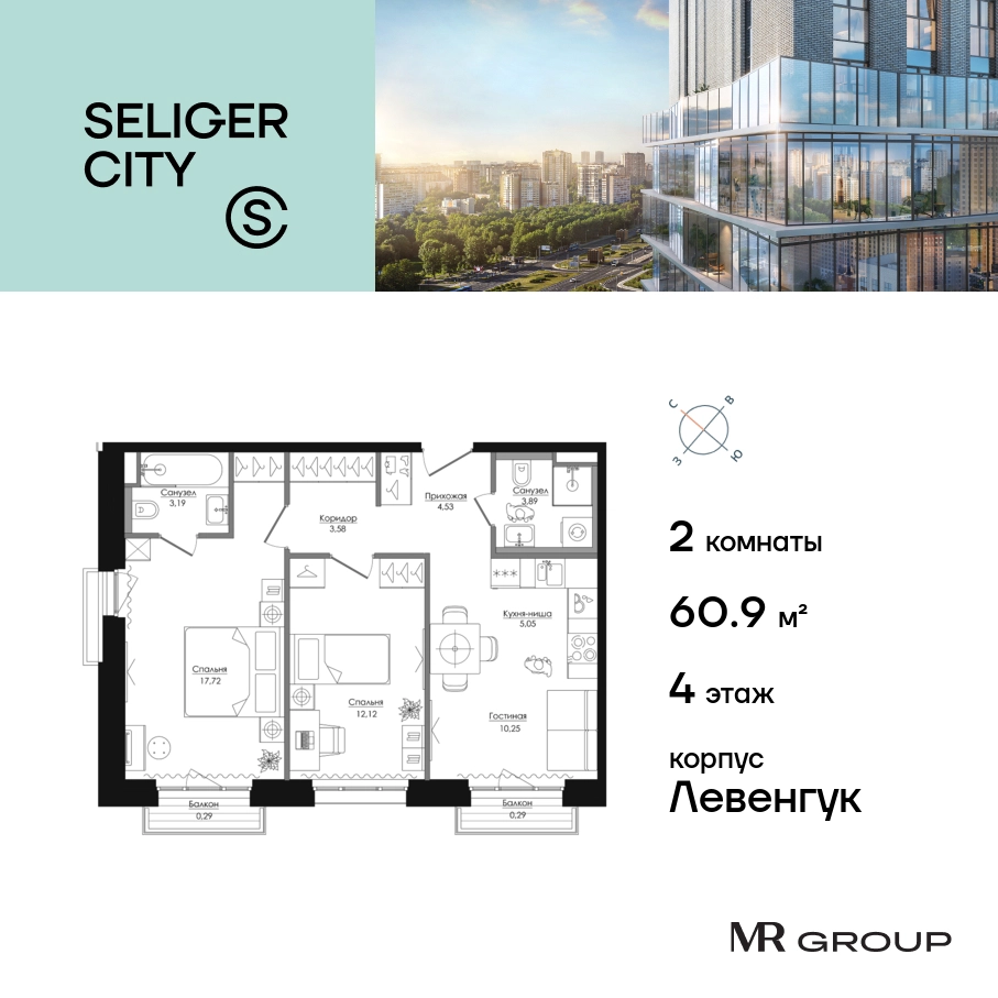 Прямая продажа от застройщика. Продаётся 2-к квартира общей площадью 61.51 кв. м без отделки в ЖК «Селигер Сити» на 4-м этаже 21 этажного дома. Селигер Сити — это уютное пространство, где предусмотрена застройка разной этажности, чтобы каждый покупатель мог выбрать то, что ему по душе: невысокие дома или небоскребы, с верхних этажей которых будут открываться отличные виды на город. Преимущества проекта: Первые три очереди сданы. • 2 минуты пешком от метро «Селигерская» • Архитектурное решение от голландского бюро MLA + • 8 корпусов разной этажности от 8 до 45 этажей • Одна из самых больших придомовых территорий в Москве — размером с 4 футбольных поля • Огороженная охраняемая территория, круглосуточное видеонаблюдение • Европейский подход к благоустройству от бюро WOWHaus: детские площадки для разных возрастов, спортивные площадки, площадки воркаута, дорожки для бега и пеших прогулок, скейтпарк, хоккейная площадка, площадка для выгула собак • Искусственный пруд на территории комплекса с благоустроенной набережной и мостом • Продуманная концепция инфраструктуры: уютные кафе и рестораны, супермаркет, магазин фермерских продуктов, бытовые службы, салон красоты, детские сады • Панорамные окна высотой до 2,5 м, в корпусах 3 очереди витражное остекление высотой до 4,2 м • Широкий выбор квартир — от компактных студий до просторных квартир с тремя спальнями и пентхаусов • Четыре вида дизайнерской отделки квартир от бюро Вlank Architects • Возможность купить квартиру с предчистовой отделкой white box • «Умный дом» на платформе Ujin. Система безопасности, вход на территорию и в подъезд по биометрии или BLE-метке, въезд в паркинг по считывателю номера, контроль климата. Все для комфортной жизни! • Лобби по индивидуальному дизайн проекту от европейского бюро Вlank Architects: лаунж-зоны, ресепшен, колясочная, помещение для мытья лап животным после прогулки • Подземный паркинг на 2189 машино-мест по индивидуальному дизайну, с зарядными устройствами для электромобилей, постами для подкачки шин и келлерами • Надежный девелопер с опытом премиальных проектов MR Group Расположение комплекса: • 2 минуты от станции метро «Селигерская» • 7 минут на машине до станции метро «Окружная» • Предусмотрен удобный выезд в сторону ТТК (всего 9 км или 15 минут без пробок) • МКАД в 10 минутах на машине Компания MR Group предлагает своим клиентам специальные условия приобретения квартир в рамках программ ипотечного кредитования от банков-партнеров.О застройщике