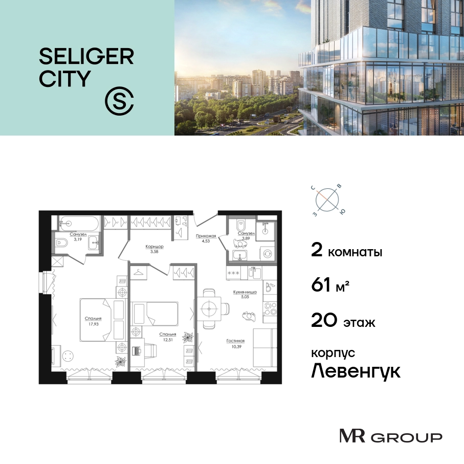 Прямая продажа от застройщика. Продаётся 2-к квартира общей площадью 61.30 кв. м без отделки в ЖК «Селигер Сити» на 20-м этаже 21 этажного дома. Селигер Сити — это уютное пространство, где предусмотрена застройка разной этажности, чтобы каждый покупатель мог выбрать то, что ему по душе: невысокие дома или небоскребы, с верхних этажей которых будут открываться отличные виды на город. Преимущества проекта: Первые три очереди сданы. • 2 минуты пешком от метро «Селигерская» • Архитектурное решение от голландского бюро MLA + • 8 корпусов разной этажности от 8 до 45 этажей • Одна из самых больших придомовых территорий в Москве — размером с 4 футбольных поля • Огороженная охраняемая территория, круглосуточное видеонаблюдение • Европейский подход к благоустройству от бюро WOWHaus: детские площадки для разных возрастов, спортивные площадки, площадки воркаута, дорожки для бега и пеших прогулок, скейтпарк, хоккейная площадка, площадка для выгула собак • Искусственный пруд на территории комплекса с благоустроенной набережной и мостом • Продуманная концепция инфраструктуры: уютные кафе и рестораны, супермаркет, магазин фермерских продуктов, бытовые службы, салон красоты, детские сады • Панорамные окна высотой до 2,5 м, в корпусах 3 очереди витражное остекление высотой до 4,2 м • Широкий выбор квартир — от компактных студий до просторных квартир с тремя спальнями и пентхаусов • Четыре вида дизайнерской отделки квартир от бюро Вlank Architects • Возможность купить квартиру с предчистовой отделкой white box • «Умный дом» на платформе Ujin. Система безопасности, вход на территорию и в подъезд по биометрии или BLE-метке, въезд в паркинг по считывателю номера, контроль климата. Все для комфортной жизни! • Лобби по индивидуальному дизайн проекту от европейского бюро Вlank Architects: лаунж-зоны, ресепшен, колясочная, помещение для мытья лап животным после прогулки • Подземный паркинг на 2189 машино-мест по индивидуальному дизайну, с зарядными устройствами для электромобилей, постами для подкачки шин и келлерами • Надежный девелопер с опытом премиальных проектов MR Group Расположение комплекса: • 2 минуты от станции метро «Селигерская» • 7 минут на машине до станции метро «Окружная» • Предусмотрен удобный выезд в сторону ТТК (всего 9 км или 15 минут без пробок) • МКАД в 10 минутах на машине Компания MR Group предлагает своим клиентам специальные условия приобретения квартир в рамках программ ипотечного кредитования от банков-партнеров.О застройщике