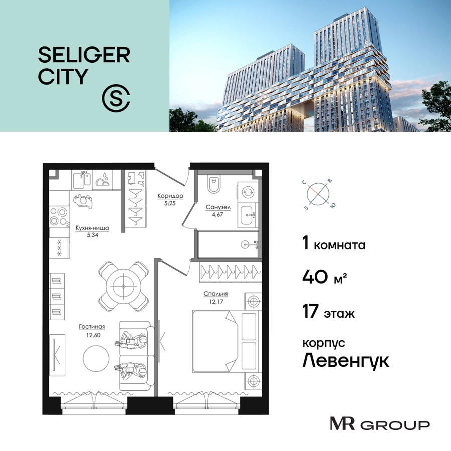 Прямая продажа от застройщика. Продаётся 1-к квартира общей площадью 40.03 кв. м без отделки в ЖК «Селигер Сити» на 17-м этаже 21 этажного дома. Селигер Сити — это уютное пространство, где предусмотрена застройка разной этажности, чтобы каждый покупатель мог выбрать то, что ему по душе: невысокие дома или небоскребы, с верхних этажей которых будут открываться отличные виды на город. Преимущества проекта: Первые три очереди сданы. • 2 минуты пешком от метро «Селигерская» • Архитектурное решение от голландского бюро MLA + • 8 корпусов разной этажности от 8 до 45 этажей • Одна из самых больших придомовых территорий в Москве — размером с 4 футбольных поля • Огороженная охраняемая территория, круглосуточное видеонаблюдение • Европейский подход к благоустройству от бюро WOWHaus: детские площадки для разных возрастов, спортивные площадки, площадки воркаута, дорожки для бега и пеших прогулок, скейтпарк, хоккейная площадка, площадка для выгула собак • Искусственный пруд на территории комплекса с благоустроенной набережной и мостом • Продуманная концепция инфраструктуры: уютные кафе и рестораны, супермаркет, магазин фермерских продуктов, бытовые службы, салон красоты, детские сады • Панорамные окна высотой до 2,5 м, в корпусах 3 очереди витражное остекление высотой до 4,2 м • Широкий выбор квартир — от компактных студий до просторных квартир с тремя спальнями и пентхаусов • Четыре вида дизайнерской отделки квартир от бюро Вlank Architects • Возможность купить квартиру с предчистовой отделкой white box • «Умный дом» на платформе Ujin. Система безопасности, вход на территорию и в подъезд по биометрии или BLE-метке, въезд в паркинг по считывателю номера, контроль климата. Все для комфортной жизни! • Лобби по индивидуальному дизайн проекту от европейского бюро Вlank Architects: лаунж-зоны, ресепшен, колясочная, помещение для мытья лап животным после прогулки • Подземный паркинг на 2189 машино-мест по индивидуальному дизайну, с зарядными устройствами для электромобилей, постами для подкачки шин и келлерами • Надежный девелопер с опытом премиальных проектов MR Group Расположение комплекса: • 2 минуты от станции метро «Селигерская» • 7 минут на машине до станции метро «Окружная» • Предусмотрен удобный выезд в сторону ТТК (всего 9 км или 15 минут без пробок) • МКАД в 10 минутах на машине Компания MR Group предлагает своим клиентам специальные условия приобретения квартир в рамках программ ипотечного кредитования от банков-партнеров.О застройщике