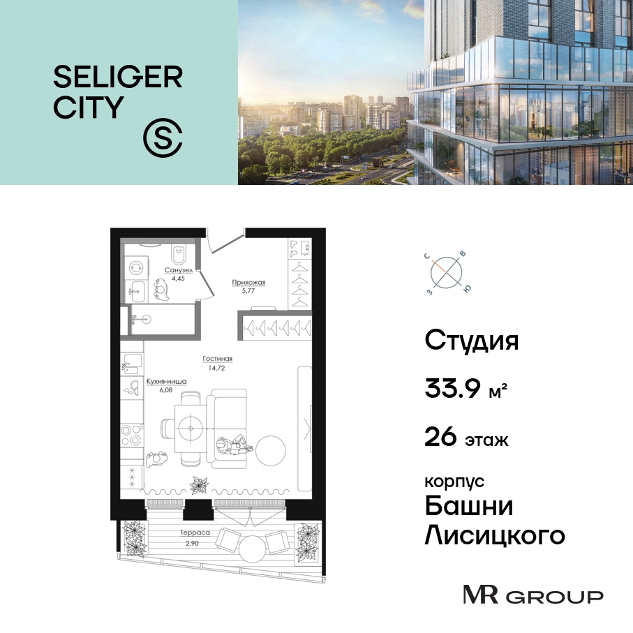 Прямая продажа от застройщика. Продаётся студия общей площадью 34.63 кв. м с предчистовой отделкой в ЖК «Селигер Сити» на 26-м этаже башни Лисицкого. Корпуса четвертой очереди ЖК «Селигер сити» названы в честь трех великих представителей науки и архитектуры, новаторское видение которых — слишком смелое для своего времени — нашло воплощение в уникальных домах жилого комплекса. Вдохновленные авангардными идеями знаменитого советского архитектора Эля Лисицкого, архитекторы создали яркий центр притяжения всего района, задающий новый стандарт жизни в современном мегаполисе — две высокие «Башни Лисицкого» с современной интерпретацией горизонтального небоскреба. Преимущества проекта: Первые три очереди сданы. • 2 минуты пешком от метро «Селигерская» • Архитектурное решение от голландского бюро MLA + • 8 корпусов разной этажности от 8 до 45 этажей • Одна из самых больших придомовых территорий в Москве — размером с 4 футбольных поля • Огороженная охраняемая территория, круглосуточное видеонаблюдение • Европейский подход к благоустройству от бюро WOWHaus: детские площадки для разных возрастов, спортивные площадки, площадки воркаута, дорожки для бега и пеших прогулок, скейтпарк, хоккейная площадка, площадка для выгула собак • Искусственный пруд на территории комплекса с благоустроенной набережной и мостом • Продуманная концепция инфраструктуры: уютные кафе и рестораны, супермаркет, магазин фермерских продуктов, бытовые службы, салон красоты, детские сады • Панорамные окна высотой до 2,5 м, в корпусах 3 очереди витражное остекление высотой до 4,2 м • Широкий выбор квартир — от компактных студий до просторных квартир с тремя спальнями и пентхаусов • Четыре вида дизайнерской отделки квартир от бюро Вlank Architects • Возможность купить квартиру с предчистовой отделкой white box • «Умный дом» на платформе Ujin. Система безопасности, вход на территорию и в подъезд по биометрии или BLE-метке, въезд в паркинг по считывателю номера, контроль климата. Все для комфортной жизни! • Лобби по индивидуальному дизайн проекту от европейского бюро Вlank Architects: лаунж-зоны, ресепшен, колясочная, помещение для мытья лап животным после прогулки • Подземный паркинг на 2189 машино-мест по индивидуальному дизайну, с зарядными устройствами для электромобилей, постами для подкачки шин и келлерами • Надежный девелопер с опытом премиальных проектов MR Group Расположение комплекса: • 2 минуты от станции метро «Селигерская» • 7 минут на машине до станции метро «Окружная» • Предусмотрен удобный выезд в сторону ТТК (всего 9 км или 15 минут без пробок) • МКАД в 10 минутах на машине Компания MR Group предлагает своим клиентам специальные условия приобретения квартир в рамках программ ипотечного кредитования от банков-партнеров.О застройщике