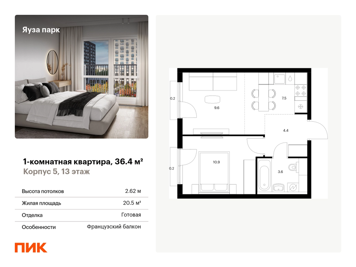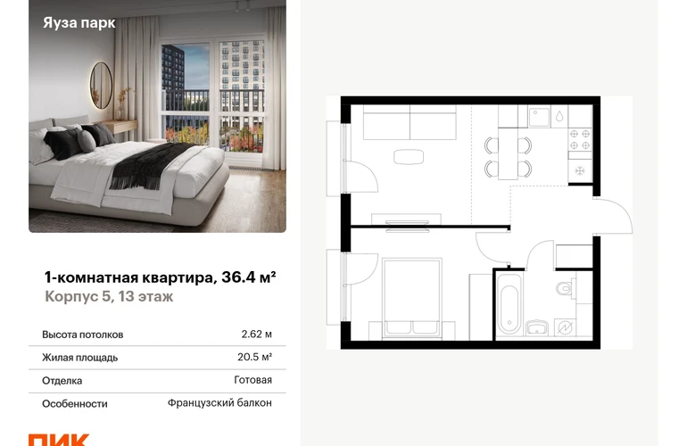 Продаётся 1-комн.квартира площадью 36.40 кв.м на 13 этаже 24 этажного дома (Корпус 5, секция 1) проекта ПИК Яуза парк. Светлый просторный подъезд на уровне земли, функциональная планировка, большие окна, с отделкой. <br> <br>Жилой квартал «Яуза парк» возводится в Мытищах, в 5 минутах ходьбы от одноимённой ж/д станции. <br> <br>Проект включает 20 домов разной этажности с благоустроенными дворами-парками. <br> <br>Индивидуальный дизайн фасадов разработали архитектурные бюро KATARSIS и RHIZOME. <br> <br>Вблизи жилого квартала появятся шумопоглощающие экраны, позволяющие забыть о том, что неподалёку находятся железнодорожные пути. На первых этажах домов откроются магазины, кафе, салоны красоты и другие полезные сервисы. Рядом есть школы и детские сады, магазины и ТРЦ «Красный кит». <br> <br>На территории проекта появится благоустроенная набережная реки Яузы и пешеходный бульвар для прогулок всей семьёй. Водонапорную башню XIX века, расположенную на территории «Яуза парка», мы реставрируем и создадим вокруг неё общественное пространство для отдыха жителей квартала. <br> <br>Для прогулок отлично подойдёт Мытищинский центральный парк культуры и отдыха, расположенный в 10 минутах ходьбы, и Лосиный остров — в 24 минутах. Дорога на автомобиле до Ярославского шоссе займёт не более 3 минут, до МКАД — 10 минут. Артикул - 940453О застройщике