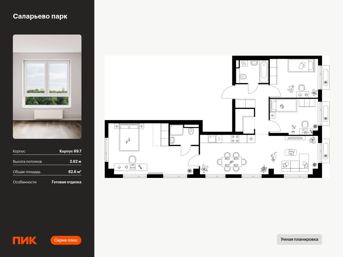 В «Серию плюс» входят жилые кварталы с повышенным уровнем комфорта и уникальной архитектурой. У квартир умные планировки: можно выбрать квартиру с мастер-спальней, где есть отдельная ванная комната, с просторной кухней-гостиной, с двумя санузлами, с гардеробной или постирочной. В светлых уютных лобби с дизайнерской отделкой предусмотрены колясочная и гостевой санузел.