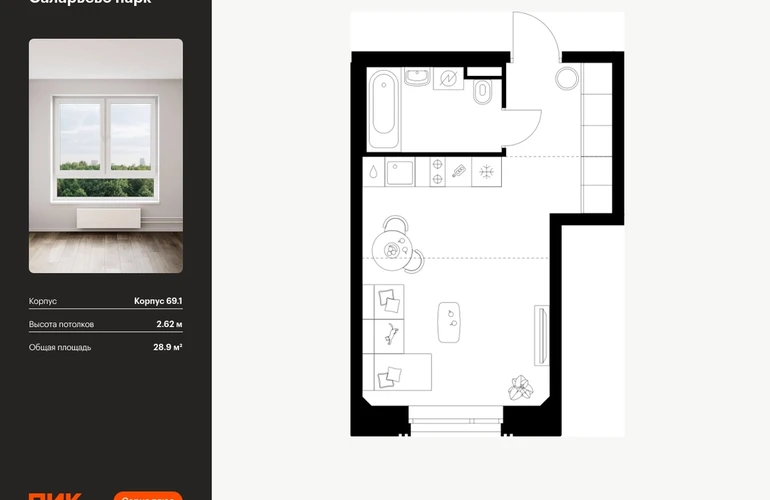 Продаётся квартира-студия площадью 28.90 кв.м на 2 этаже 23 этажного дома (Корпус 69.1, секция 1) проекта ПИК Саларьево парк. Светлый просторный подъезд на уровне земли, функциональная планировка, большие окна, с отделкой. Жилой район «Саларьево парк» расположен в Новой Москве, в четырёх километрах от МКАД по Киевскому шоссе. Две станции метро: «Саларьево» и «Филатов луг», — находятся в пешей доступности от проекта. Дойти до них можно за 5–10 минут. В квартале уже создана качественная среда, где есть абсолютно всё для полноценной жизни, работы и отдыха. «Саларьево парк» — не просто квартал, а полноценный жилой район, который отличается разноплановой архитектурой. Над концепцией квартала работали несколько ведущих архитектурных бюро, которые стремились добиться разнообразия в фасадных решениях. Ярким примером такого подхода станут корпуса 82 и 83, которые относятся к «Серии плюс». Новый корпус 83 был создан по принципам южной архитектуры: расслабленный и лаконичный силуэт зданий, привлекающий к себе внимание. Архитектурная изюминка 83-го корпуса — террасы и фигурные балконы. Вместе с окнами и другими акцентными элементами они создают уникальный облик здания, отсылая нас к изысканной южной архитектуре. Все корпуса в квартале гармонично сочетаются, образуя единую городскую среду. Здесь приятно гулять и проводить время на улице всей семьёй. В «Саларьево парке» создана уникальная образовательная среда, включающая в себя шесть школ, рассчитанных на 6 250 учеников. Четыре из них уже открыты, их посещает 2 300 детей. Также на территории «Саларьево парка» находится 12 детских садов, один из которых с бассейном. Сейчас уже открыты 8 садов. В «Саларьево парке» открыта уникальная игровая площадка — PlayHub «Оригами». Здесь есть ручей, горка-труба и рельефные холмы. Взрослые смогут отдохнуть в уютном кафе, пока дети играют. Также на территории проекта есть SportHub — большая спортивная зона, разделённая по интересам и возрастам. Здесь можно заниматься разными видами спорта: футболом, баскетболом, волейболом и стритболом. Зимой центральную часть площадки превращают в каток. Во дворах-парках жилого квартала есть места для отдыха, детские и спортивные площадки. На первых этажах домов расположены магазины, кафе и полезные сервисы. Также вблизи проекта есть несколько масштабных торговых центров. До ТЦ «Саларис» пять минут пешком, до «Рио», Metro Cash & Carry и «Леруа Мерлен» — пять минут на автомобиле. Артикул - 1023192О застройщике