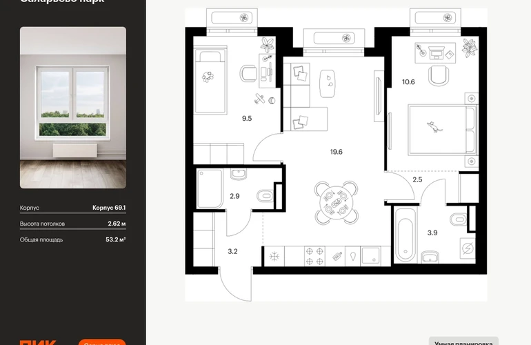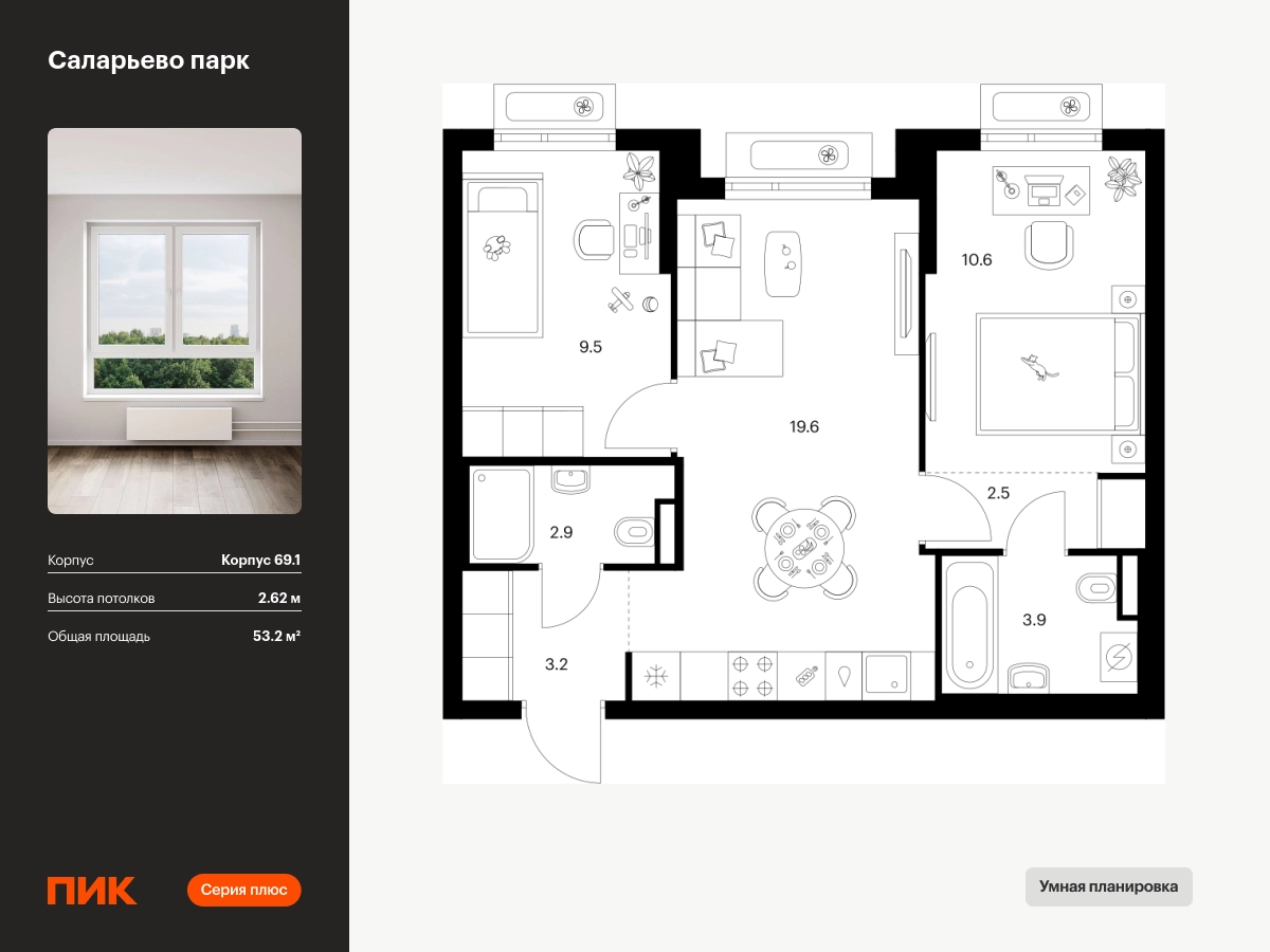 Продаётся 2-комн.квартира площадью 53.20 кв.м на 15 этаже 23 этажного дома (Корпус 69.1, секция 1) проекта ПИК Саларьево парк. Светлый просторный подъезд на уровне земли, функциональная планировка, большие окна, с отделкой. Жилой район «Саларьево парк» расположен в Новой Москве, в четырёх километрах от МКАД по Киевскому шоссе. Две станции метро: «Саларьево» и «Филатов луг» — находятся в пешей доступности от проекта. Дойти до них можно за 5–10 минут. В квартале уже создана качественная среда, где есть абсолютно всё для полноценной жизни, работы и отдыха. «Саларьево парк» — не просто квартал, а полноценный жилой район, который отличается разноплановой архитектурой. Над концепцией квартала работали несколько ведущих архитектурных бюро, которые стремились добиться разнообразия в фасадных решениях. Ярким примером такого подхода станет корпус 83, который относится к «Серии плюс». Новый корпус 83 был создан по принципам южной архитектуры: расслабленный и лаконичный силуэт зданий, привлекающий к себе внимание. Архитектурная изюминка 83-го корпуса — террасы и фигурные балконы. Вместе с окнами и другими акцентными элементами они создают уникальный облик здания, отсылая нас к изысканной южной архитектуре. Все корпуса в квартале гармонично сочетаются, образуя единую городскую среду. Здесь приятно гулять и проводить время на улице всей семьёй. В «Саларьево парке» создана уникальная образовательная среда, включающая в себя шесть школ, рассчитанных на 6 250 учеников. Две из них уже открыты, их посещает 2 300 детей. Также на территории «Саларьево парка» находится 12 детских садов, один из которых с бассейном. Сейчас уже открыты 7 садов. В «Саларьево парке» открыта уникальная игровая площадка — PlayHub «Оригами». Здесь есть ручей, горка-труба и рельефные холмы. Взрослые смогут отдохнуть в уютном кафе, пока дети играют. Также на территории проекта есть SportHub — большая спортивная зона, разделённая по интересам и возрастам. Здесь можно заниматься разными видами спорта: футболом, баскетболом, волейболом и стритболом. Зимой центральную часть площадки превращают в каток. Во дворах-парках жилого квартала есть места для отдыха, детские и спортивные площадки. На первых этажах домов расположены магазины, кафе и полезные сервисы. Также вблизи проекта есть несколько масштабных торговых центров. До ТЦ «Саларис» пять минут пешком, до «Рио», Metro Cash & Carry и «Лемана про» — пять минут на автомобиле. Артикул - 1023348О застройщике