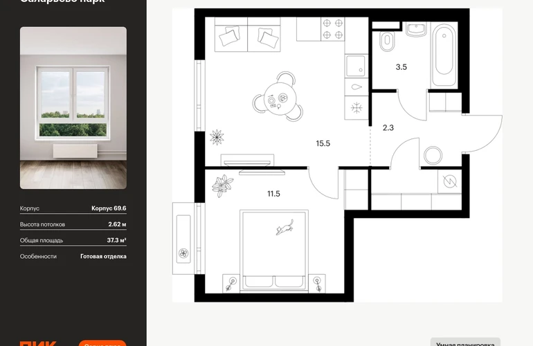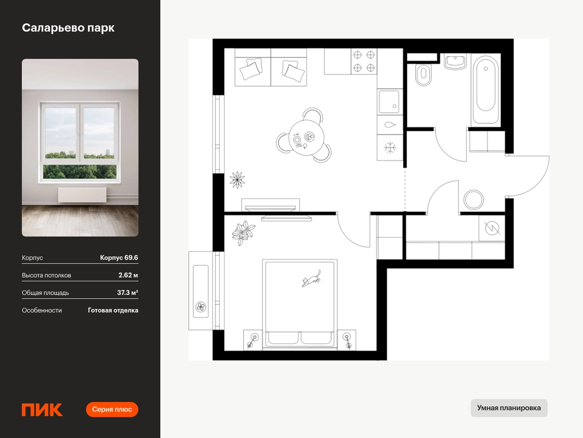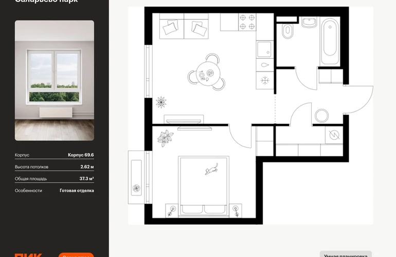 Продаётся 1-комн.квартира площадью 37.30 кв.м на 2 этаже 14 этажного дома (Корпус 69.6, секция 6) проекта ПИК Саларьево парк. Светлый просторный подъезд на уровне земли, функциональная планировка, большие окна, с отделкой. Жилой район «Саларьево парк» расположен в Новой Москве, в четырёх километрах от МКАД по Киевскому шоссе. Две станции метро: «Саларьево» и «Филатов луг», — находятся в пешей доступности от проекта. Дойти до них можно за 5–10 минут. В квартале уже создана качественная среда, где есть абсолютно всё для полноценной жизни, работы и отдыха. «Саларьево парк» — не просто квартал, а полноценный жилой район, который отличается разноплановой архитектурой. Над концепцией квартала работали несколько ведущих архитектурных бюро, которые стремились добиться разнообразия в фасадных решениях. Ярким примером такого подхода станут корпуса 82 и 83, которые относятся к «Серии плюс». Новый корпус 83 был создан по принципам южной архитектуры: расслабленный и лаконичный силуэт зданий, привлекающий к себе внимание. Архитектурная изюминка 83-го корпуса — террасы и фигурные балконы. Вместе с окнами и другими акцентными элементами они создают уникальный облик здания, отсылая нас к изысканной южной архитектуре. Все корпуса в квартале гармонично сочетаются, образуя единую городскую среду. Здесь приятно гулять и проводить время на улице всей семьёй. В «Саларьево парке» создана уникальная образовательная среда, включающая в себя шесть школ, рассчитанных на 6 250 учеников. Четыре из них уже открыты, их посещает 2 300 детей. Также на территории «Саларьево парка» находится 12 детских садов, один из которых с бассейном. Сейчас уже открыты 8 садов. В «Саларьево парке» открыта уникальная игровая площадка — PlayHub «Оригами». Здесь есть ручей, горка-труба и рельефные холмы. Взрослые смогут отдохнуть в уютном кафе, пока дети играют. Также на территории проекта есть SportHub — большая спортивная зона, разделённая по интересам и возрастам. Здесь можно заниматься разными видами спорта: футболом, баскетболом, волейболом и стритболом. Зимой центральную часть площадки превращают в каток. Во дворах-парках жилого квартала есть места для отдыха, детские и спортивные площадки. На первых этажах домов расположены магазины, кафе и полезные сервисы. Также вблизи проекта есть несколько масштабных торговых центров. До ТЦ «Саларис» пять минут пешком, до «Рио», Metro Cash & Carry и «Леруа Мерлен» — пять минут на автомобиле. Артикул - 1024017О застройщике