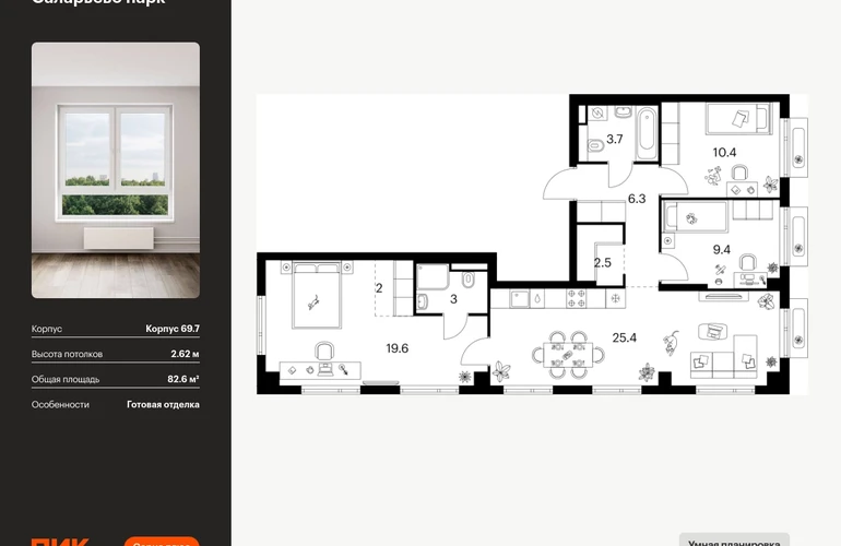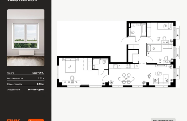 Продаётся 3-комн.квартира площадью 82.60 кв.м на 6 этаже 14 этажного дома (Корпус 69.7, секция 7) проекта ПИК Саларьево парк. Светлый просторный подъезд на уровне земли, функциональная планировка, большие окна, с отделкой. Жилой район «Саларьево парк» расположен в Новой Москве, в четырёх километрах от МКАД по Киевскому шоссе. Две станции метро: «Саларьево» и «Филатов луг», — находятся в пешей доступности от проекта. Дойти до них можно за 5–10 минут. В квартале уже создана качественная среда, где есть абсолютно всё для полноценной жизни, работы и отдыха. «Саларьево парк» — не просто квартал, а полноценный жилой район, который отличается разноплановой архитектурой. Над концепцией квартала работали несколько ведущих архитектурных бюро, которые стремились добиться разнообразия в фасадных решениях. Ярким примером такого подхода станут корпуса 82 и 83, которые относятся к «Серии плюс». Новый корпус 83 был создан по принципам южной архитектуры: расслабленный и лаконичный силуэт зданий, привлекающий к себе внимание. Архитектурная изюминка 83-го корпуса — террасы и фигурные балконы. Вместе с окнами и другими акцентными элементами они создают уникальный облик здания, отсылая нас к изысканной южной архитектуре. Все корпуса в квартале гармонично сочетаются, образуя единую городскую среду. Здесь приятно гулять и проводить время на улице всей семьёй. В «Саларьево парке» создана уникальная образовательная среда, включающая в себя шесть школ, рассчитанных на 6 250 учеников. Четыре из них уже открыты, их посещает 2 300 детей. Также на территории «Саларьево парка» находится 12 детских садов, один из которых с бассейном. Сейчас уже открыты 8 садов. В «Саларьево парке» открыта уникальная игровая площадка — PlayHub «Оригами». Здесь есть ручей, горка-труба и рельефные холмы. Взрослые смогут отдохнуть в уютном кафе, пока дети играют. Также на территории проекта есть SportHub — большая спортивная зона, разделённая по интересам и возрастам. Здесь можно заниматься разными видами спорта: футболом, баскетболом, волейболом и стритболом. Зимой центральную часть площадки превращают в каток. Во дворах-парках жилого квартала есть места для отдыха, детские и спортивные площадки. На первых этажах домов расположены магазины, кафе и полезные сервисы. Также вблизи проекта есть несколько масштабных торговых центров. До ТЦ «Саларис» пять минут пешком, до «Рио», Metro Cash & Carry и «Леруа Мерлен» — пять минут на автомобиле. Артикул - 1024147О застройщике