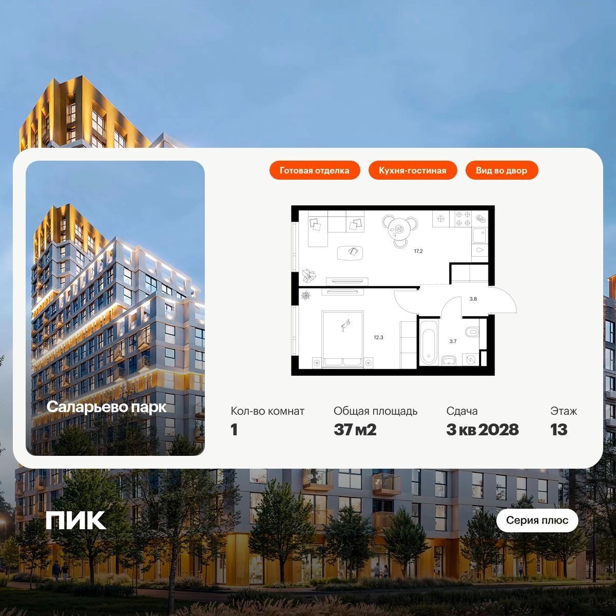 Продаётся 1-комн.квартира площадью 37.00 кв.м на 13 этаже 14 этажного дома (Корпус 69.7, секция 7) проекта ПИК Саларьево парк. Светлый просторный подъезд на уровне земли, функциональная планировка, большие окна, с отделкой. Жилой район «Саларьево парк» расположен в Новой Москве, в четырёх километрах от МКАД по Киевскому шоссе. Две станции метро: «Саларьево» и «Филатов луг» — находятся в пешей доступности от проекта. Дойти до них можно за 5–10 минут. В квартале уже создана качественная среда, где есть абсолютно всё для полноценной жизни, работы и отдыха. «Саларьево парк» — не просто квартал, а полноценный жилой район, который отличается разноплановой архитектурой. Над концепцией квартала работали несколько ведущих архитектурных бюро, которые стремились добиться разнообразия в фасадных решениях. Ярким примером такого подхода станет корпус 83, который относится к «Серии плюс». Новый корпус 83 был создан по принципам южной архитектуры: расслабленный и лаконичный силуэт зданий, привлекающий к себе внимание. Архитектурная изюминка 83-го корпуса — террасы и фигурные балконы. Вместе с окнами и другими акцентными элементами они создают уникальный облик здания, отсылая нас к изысканной южной архитектуре. Все корпуса в квартале гармонично сочетаются, образуя единую городскую среду. Здесь приятно гулять и проводить время на улице всей семьёй. В «Саларьево парке» создана уникальная образовательная среда, включающая в себя шесть школ, рассчитанных на 6 250 учеников. Две из них уже открыты, их посещает 2 300 детей. Также на территории «Саларьево парка» находится 12 детских садов, один из которых с бассейном. Сейчас уже открыты 7 садов. В «Саларьево парке» открыта уникальная игровая площадка — PlayHub «Оригами». Здесь есть ручей, горка-труба и рельефные холмы. Взрослые смогут отдохнуть в уютном кафе, пока дети играют. Также на территории проекта есть SportHub — большая спортивная зона, разделённая по интересам и возрастам. Здесь можно заниматься разными видами спорта: футболом, баскетболом, волейболом и стритболом. Зимой центральную часть площадки превращают в каток. Во дворах-парках жилого квартала есть места для отдыха, детские и спортивные площадки. На первых этажах домов расположены магазины, кафе и полезные сервисы. Также вблизи проекта есть несколько масштабных торговых центров. До ТЦ «Саларис» пять минут пешком, до «Рио», Metro Cash & Carry и «Лемана про» — пять минут на автомобиле. Артикул - 1024235О застройщике