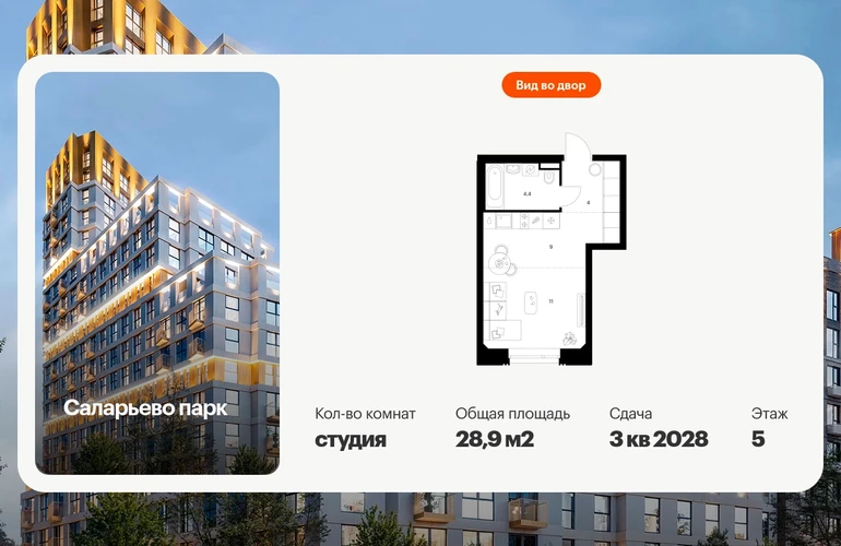 Продаётся квартира-студия площадью 28.90 кв.м на 5 этаже 23 этажного дома (Корпус 69.1, секция 1) проекта ПИК Саларьево парк. Светлый просторный подъезд на уровне земли, функциональная планировка, большие окна, с отделкой. Жилой район «Саларьево парк» расположен в Новой Москве, в четырёх километрах от МКАД по Киевскому шоссе. Две станции метро: «Саларьево» и «Филатов луг» — находятся в пешей доступности от проекта. Дойти до них можно за 5–10 минут. В квартале уже создана качественная среда, где есть абсолютно всё для полноценной жизни, работы и отдыха. «Саларьево парк» — не просто квартал, а полноценный жилой район, который отличается разноплановой архитектурой. Над концепцией квартала работали несколько ведущих архитектурных бюро, которые стремились добиться разнообразия в фасадных решениях. Ярким примером такого подхода станет корпус 83, который относится к «Серии плюс». Новый корпус 83 был создан по принципам южной архитектуры: расслабленный и лаконичный силуэт зданий, привлекающий к себе внимание. Архитектурная изюминка 83-го корпуса — террасы и фигурные балконы. Вместе с окнами и другими акцентными элементами они создают уникальный облик здания, отсылая нас к изысканной южной архитектуре. Все корпуса в квартале гармонично сочетаются, образуя единую городскую среду. Здесь приятно гулять и проводить время на улице всей семьёй. В «Саларьево парке» создана уникальная образовательная среда, включающая в себя шесть школ, рассчитанных на 6 250 учеников. Две из них уже открыты, их посещает 2 300 детей. Также на территории «Саларьево парка» находится 12 детских садов, один из которых с бассейном. Сейчас уже открыты 7 садов. В «Саларьево парке» открыта уникальная игровая площадка — PlayHub «Оригами». Здесь есть ручей, горка-труба и рельефные холмы. Взрослые смогут отдохнуть в уютном кафе, пока дети играют. Также на территории проекта есть SportHub — большая спортивная зона, разделённая по интересам и возрастам. Здесь можно заниматься разными видами спорта: футболом, баскетболом, волейболом и стритболом. Зимой центральную часть площадки превращают в каток. Во дворах-парках жилого квартала есть места для отдыха, детские и спортивные площадки. На первых этажах домов расположены магазины, кафе и полезные сервисы. Также вблизи проекта есть несколько масштабных торговых центров. До ТЦ «Саларис» пять минут пешком, до «Рио», Metro Cash & Carry и «Лемана про» — пять минут на автомобиле. Артикул - 1023227О застройщике