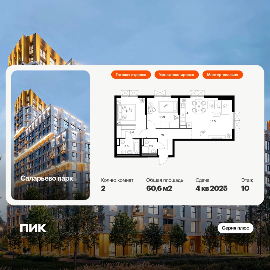 В «Серию плюс» входят жилые кварталы с повышенным уровнем комфорта и уникальной архитектурой. У квартир умные планировки: можно выбрать квартиру с мастер-спальней, где есть отдельная ванная комната, с просторной кухней-гостиной, с двумя санузлами, с гардеробной или постирочной. В светлых уютных лобби с дизайнерской отделкой предусмотрены колясочная и гостевой санузел.