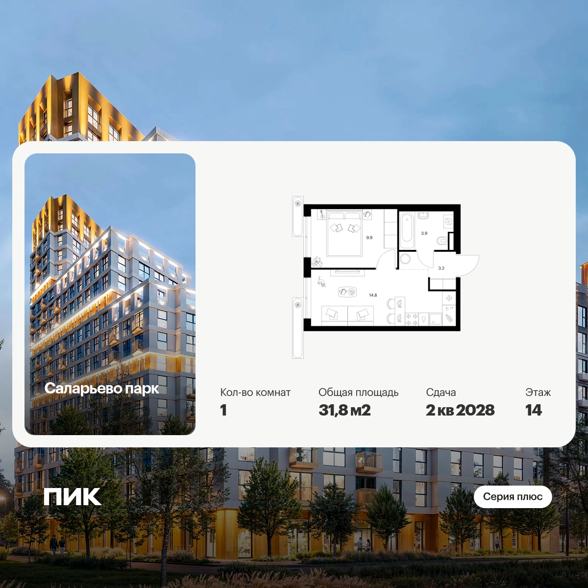 Продаётся 1-комн.квартира площадью 31.80 кв.м на 14 этаже 16 этажного дома (Корпус 57.4, секция 4) проекта ПИК Саларьево парк. Светлый просторный подъезд на уровне земли, функциональная планировка, большие окна, с отделкой. Жилой район «Саларьево парк» расположен в Новой Москве, в четырёх километрах от МКАД по Киевскому шоссе. Две станции метро: «Саларьево» и «Филатов луг» — находятся в пешей доступности от проекта. Дойти до них можно за 5–10 минут. В квартале уже создана качественная среда, где есть абсолютно всё для полноценной жизни, работы и отдыха. «Саларьево парк» — не просто квартал, а полноценный жилой район, который отличается разноплановой архитектурой. Над концепцией квартала работали несколько ведущих архитектурных бюро, которые стремились добиться разнообразия в фасадных решениях. Ярким примером такого подхода станет корпус 83, который относится к «Серии плюс». Новый корпус 83 был создан по принципам южной архитектуры: расслабленный и лаконичный силуэт зданий, привлекающий к себе внимание. Архитектурная изюминка 83-го корпуса — террасы и фигурные балконы. Вместе с окнами и другими акцентными элементами они создают уникальный облик здания, отсылая нас к изысканной южной архитектуре. Все корпуса в квартале гармонично сочетаются, образуя единую городскую среду. Здесь приятно гулять и проводить время на улице всей семьёй. В «Саларьево парке» создана уникальная образовательная среда, включающая в себя шесть школ, рассчитанных на 6 250 учеников. Две из них уже открыты, их посещает 2 300 детей. Также на территории «Саларьево парка» находится 12 детских садов, один из которых с бассейном. Сейчас уже открыты 7 садов. В «Саларьево парке» открыта уникальная игровая площадка — PlayHub «Оригами». Здесь есть ручей, горка-труба и рельефные холмы. Взрослые смогут отдохнуть в уютном кафе, пока дети играют. Также на территории проекта есть SportHub — большая спортивная зона, разделённая по интересам и возрастам. Здесь можно заниматься разными видами спорта: футболом, баскетболом, волейболом и стритболом. Зимой центральную часть площадки превращают в каток. Во дворах-парках жилого квартала есть места для отдыха, детские и спортивные площадки. На первых этажах домов расположены магазины, кафе и полезные сервисы. Также вблизи проекта есть несколько масштабных торговых центров. До ТЦ «Саларис» пять минут пешком, до «Рио», Metro Cash & Carry и «Лемана про» — пять минут на автомобиле. Артикул - 1018663О застройщике