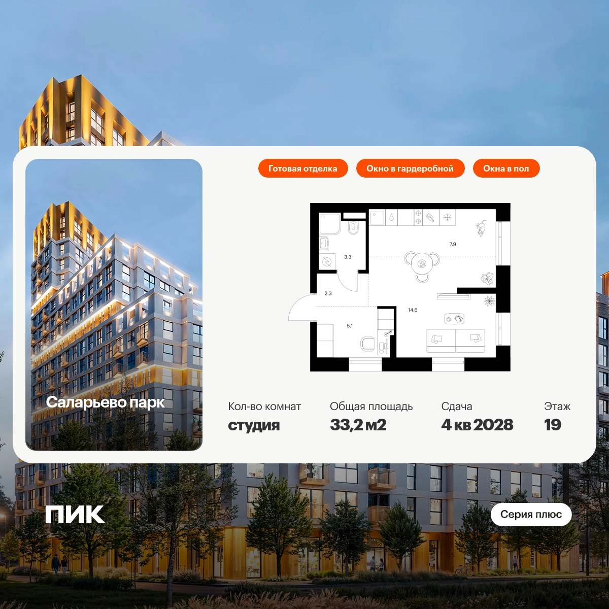 В «Серию плюс» входят жилые кварталы с повышенным уровнем комфорта и уникальной архитектурой. У квартир умные планировки: можно выбрать квартиру с мастер-спальней, где есть отдельная ванная комната, с просторной кухней-гостиной, с двумя санузлами, с гардеробной или постирочной. В светлых уютных лобби с дизайнерской отделкой предусмотрены колясочная и гостевой санузел.