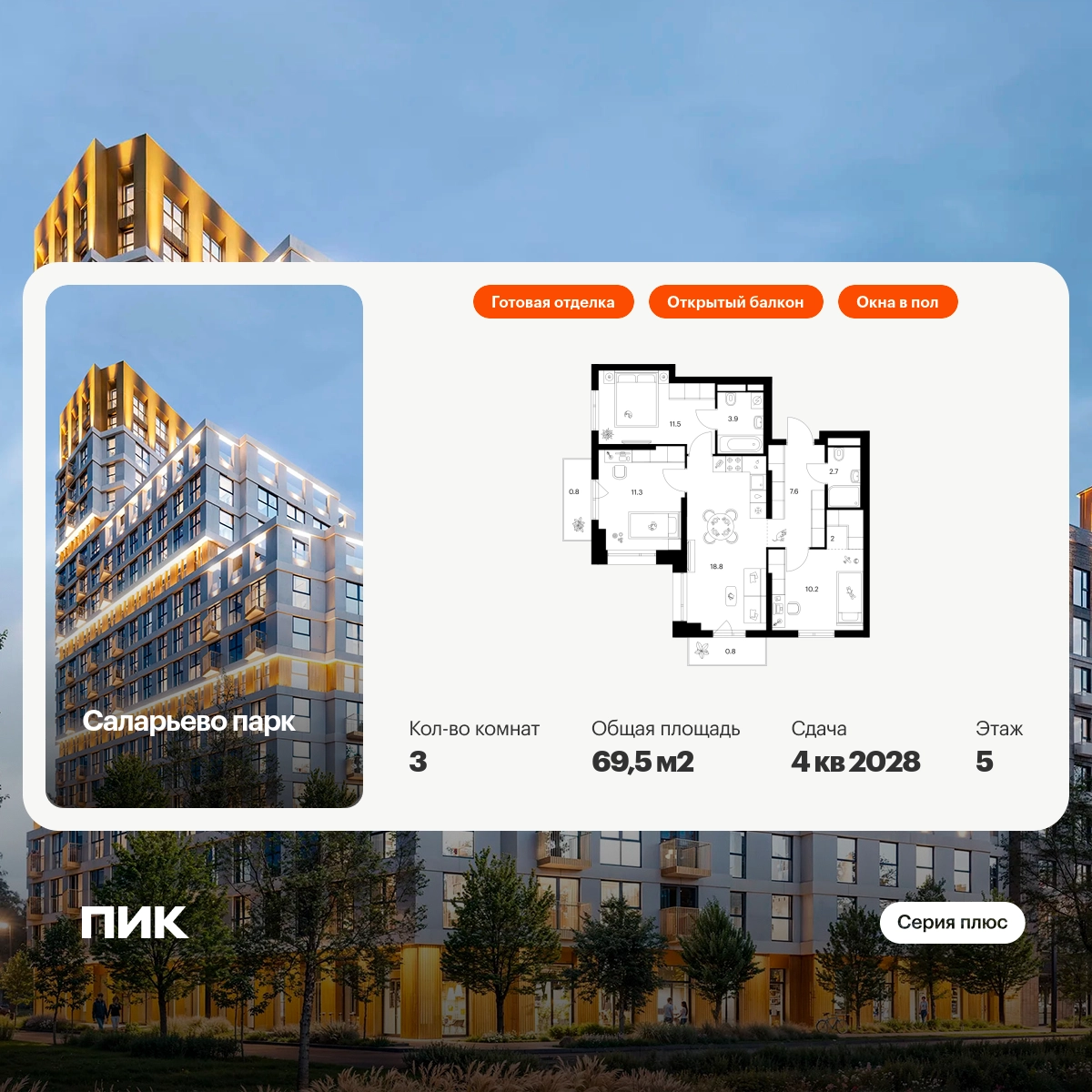 В «Серию плюс» входят жилые кварталы с повышенным уровнем комфорта и уникальной архитектурой. У квартир умные планировки: можно выбрать квартиру с мастер-спальней, где есть отдельная ванная комната, с просторной кухней-гостиной, с двумя санузлами, с гардеробной или постирочной. В светлых уютных лобби с дизайнерской отделкой предусмотрены колясочная и гостевой санузел.