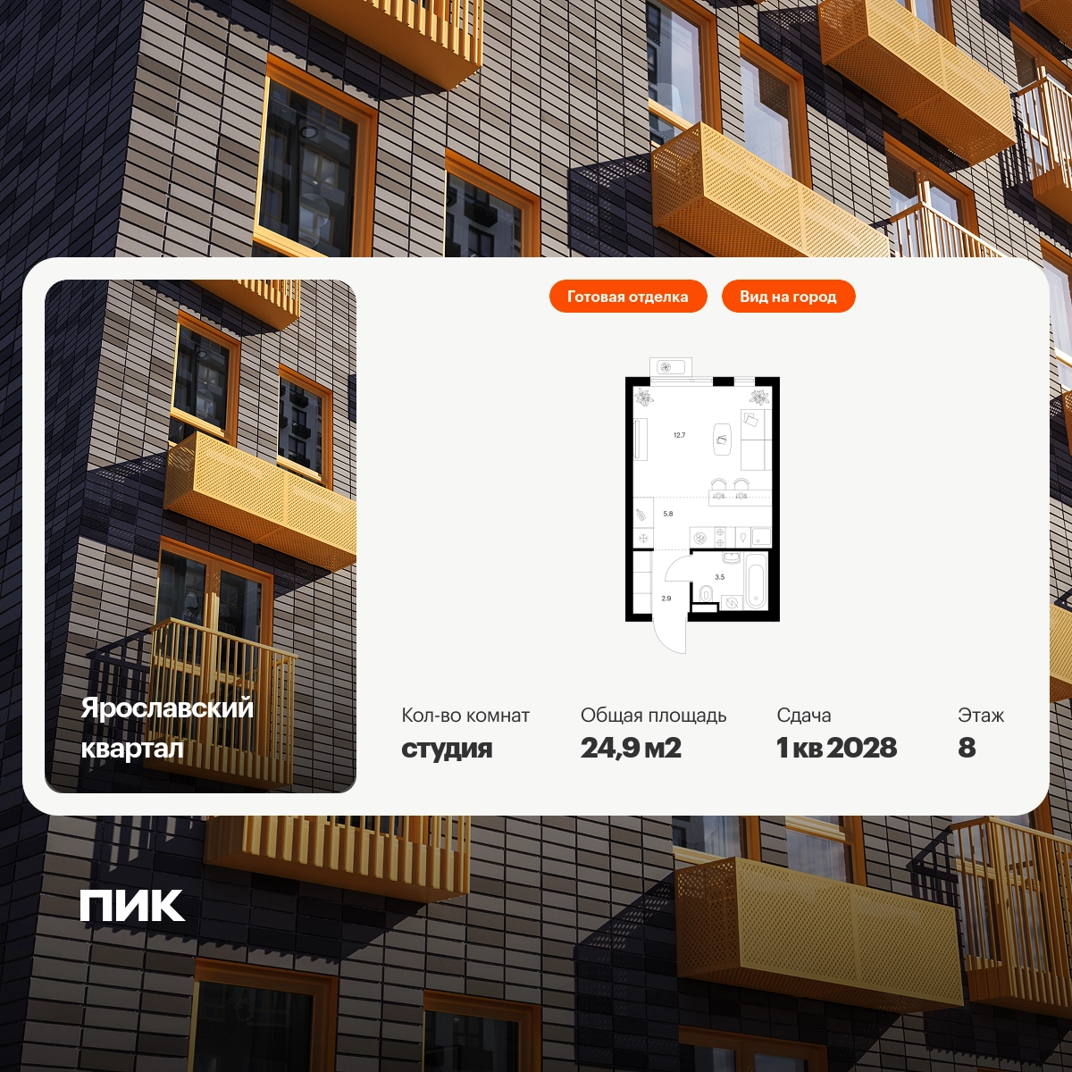 Продаётся квартира-студия площадью 24.90 кв.м на 8 этаже 25 этажного дома (Корпус 2.2, секция 1) проекта ПИК Ярославский квартал. Светлый просторный подъезд на уровне земли, функциональная планировка, большие окна, с отделкой. Проект «Ярославский квартал» возводится в Мытищах, в 6 км от МКАД. Жилой квартал, состоящий из 8 корпусов, строится рядом с Ярославским шоссе и имеет удобный заезд с крупной автомагистрали. На территории проекта появится школа, детский сад и пешеходный бульвар. Индивидуальные дизайны фасадов для «Ярославского квартала» разработало петербургское архитектурное бюро RHIZOME. В их портфолио вошли работы для Московского музея современного искусства, ГЦСИ, Манифеста 10 и ЦВЗ Манеж. За 7 минут можно дойти пешком до ближайшей автобусной остановки. Столько же займёт дорога до «Лосиного острова» — облагороженного парка с разными активностями для всей семьи, благоустроенными зонами для отдыха, местами для прогулок и пробежек на свежем воздухе. Доехать на автомобиле до Ярославского шоссе получится за 3 минуты, до станции «Мытищи» — за 9 минут, до МКАД — за 15 минут. Артикул - 1013108О застройщике