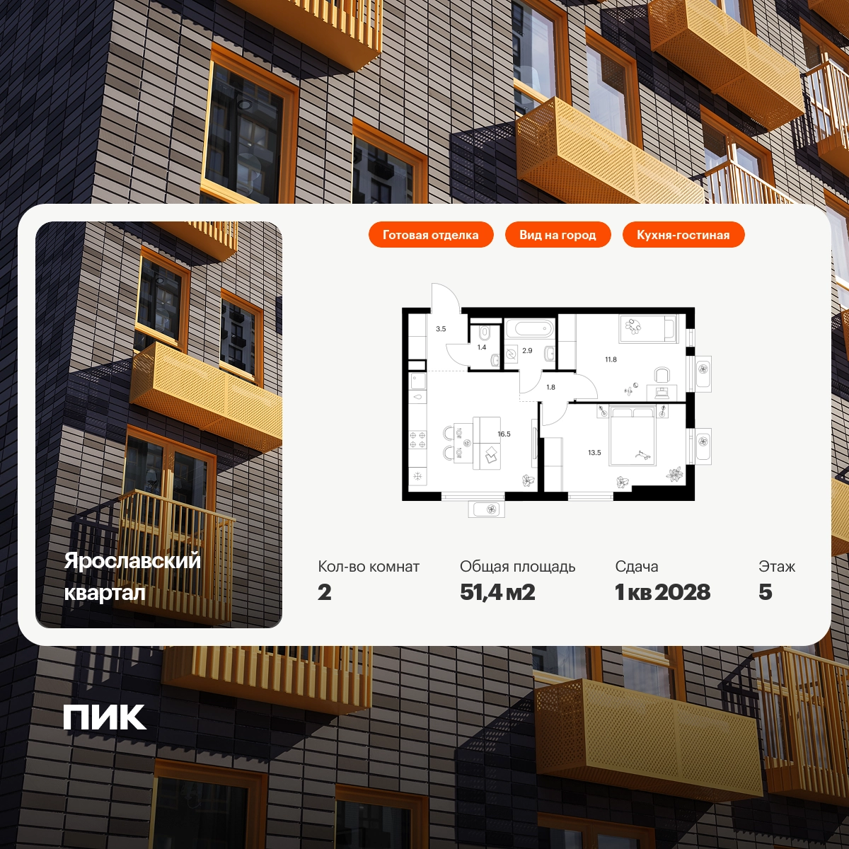 Продаётся 2-комн.квартира площадью 51.40 кв.м на 5 этаже 25 этажного дома (Корпус 2.4, секция 1) проекта ПИК Ярославский квартал. Светлый просторный подъезд на уровне земли, функциональная планировка, большие окна, с отделкой. Проект «Ярославский квартал» возводится в Мытищах, в 6 км от МКАД. Жилой квартал, состоящий из 8 корпусов, строится рядом с Ярославским шоссе и имеет удобный заезд с крупной автомагистрали. На территории проекта появится школа, детский сад и пешеходный бульвар. Индивидуальные дизайны фасадов для «Ярославского квартала» разработало петербургское архитектурное бюро RHIZOME. В их портфолио вошли работы для Московского музея современного искусства, ГЦСИ, Манифеста 10 и ЦВЗ Манеж. За 7 минут можно дойти пешком до ближайшей автобусной остановки. Столько же займёт дорога до «Лосиного острова» — облагороженного парка с разными активностями для всей семьи, благоустроенными зонами для отдыха, местами для прогулок и пробежек на свежем воздухе. Доехать на автомобиле до Ярославского шоссе получится за 3 минуты, до станции «Мытищи» — за 9 минут, до МКАД — за 15 минут. Артикул - 1013391О застройщике