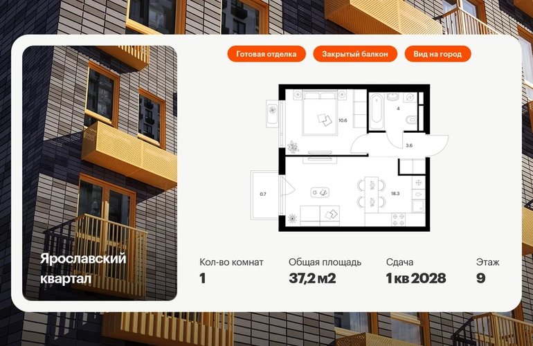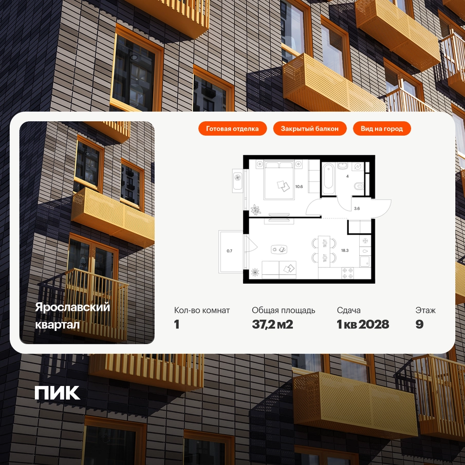 Продаётся 1-комн.квартира площадью 37.20 кв.м на 9 этаже 25 этажного дома (Корпус 2.4, секция 1) проекта ПИК Ярославский квартал. Светлый просторный подъезд на уровне земли, функциональная планировка, большие окна, с отделкой. Проект «Ярославский квартал» возводится в Мытищах, в 6 км от МКАД. Жилой квартал, состоящий из 8 корпусов, строится рядом с Ярославским шоссе и имеет удобный заезд с крупной автомагистрали. На территории проекта появится школа, детский сад и пешеходный бульвар. Индивидуальные дизайны фасадов для «Ярославского квартала» разработало петербургское архитектурное бюро RHIZOME. В их портфолио вошли работы для Московского музея современного искусства, ГЦСИ, Манифеста 10 и ЦВЗ Манеж. За 7 минут можно дойти пешком до ближайшей автобусной остановки. Столько же займёт дорога до «Лосиного острова» — облагороженного парка с разными активностями для всей семьи, благоустроенными зонами для отдыха, местами для прогулок и пробежек на свежем воздухе. Доехать на автомобиле до Ярославского шоссе получится за 3 минуты, до станции «Мытищи» — за 9 минут, до МКАД — за 15 минут. Артикул - 1013432О застройщике
