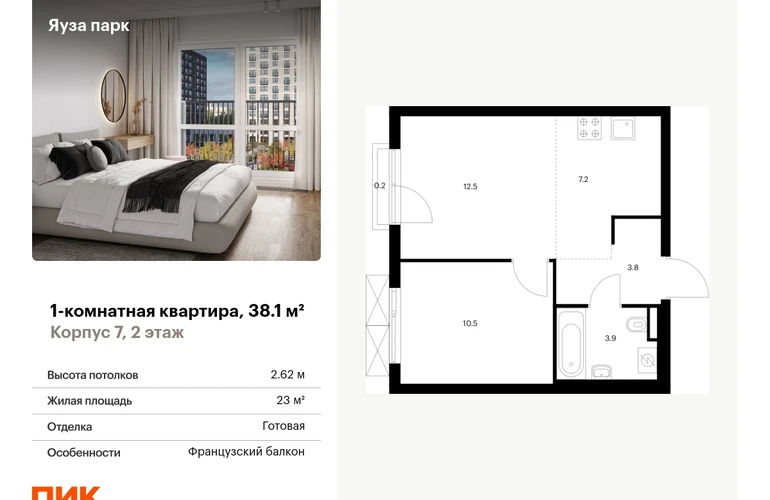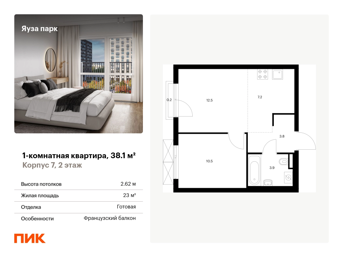 Продаётся 1-комн.квартира площадью 38.10 кв.м на 2 этаже 24 этажного дома (Корпус 7, секция 1) проекта ПИК Яуза парк. Светлый просторный подъезд на уровне земли, функциональная планировка, большие окна, с отделкой. Жилой квартал «Яуза парк» возводится в Мытищах, в 5 минутах ходьбы от одноимённой ж/д станции. Проект включает 20 домов разной этажности с благоустроенными дворами-парками. Индивидуальный дизайн фасадов разработали архитектурные бюро KATARSIS и RHIZOME. Вблизи жилого квартала появятся шумопоглощающие экраны, позволяющие забыть о том, что неподалёку находятся железнодорожные пути. На первых этажах домов откроются магазины, кафе, салоны красоты и другие полезные сервисы. Рядом есть школы и детские сады, магазины и ТРЦ «Красный кит». На территории проекта появится благоустроенная набережная реки Яузы и пешеходный бульвар для прогулок всей семьёй. Водонапорную башню XIX века, расположенную на территории «Яуза парка», мы реставрируем и создадим вокруг неё общественное пространство для отдыха жителей квартала. Для прогулок отлично подойдёт Мытищинский центральный парк культуры и отдыха, расположенный в 10 минутах ходьбы, и Лосиный остров — в 24 минутах. Дорога на автомобиле до Ярославского шоссе займёт не более 3 минут, до МКАД — 10 минут. Артикул - 995874О застройщике