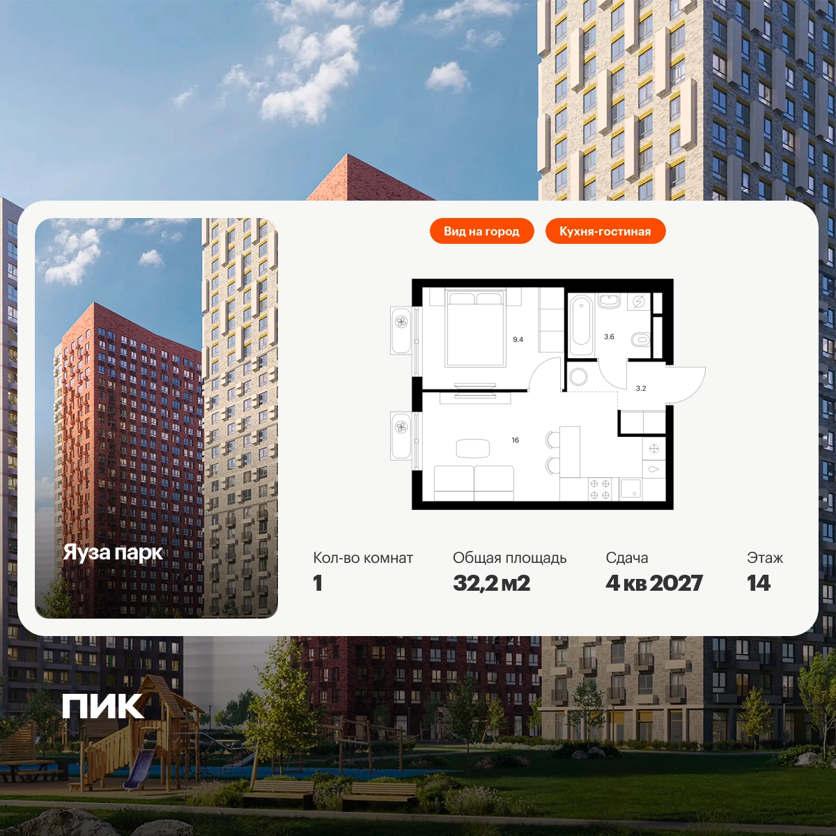 Продаётся 1-комн.квартира площадью 32.20 кв.м на 14 этаже 24 этажного дома (Корпус 12, секция 1) проекта ПИК Яуза парк. Светлый просторный подъезд на уровне земли, функциональная планировка, большие окна, с отделкой. Жилой квартал «Яуза парк» возводится в Мытищах, в 5 минутах ходьбы от одноимённой ж/д станции. Проект включает 20 домов разной этажности с благоустроенными дворами-парками. Индивидуальный дизайн фасадов разработали архитектурные бюро KATARSIS и RHIZOME. Вблизи жилого квартала появятся шумопоглощающие экраны, позволяющие забыть о том, что неподалёку находятся железнодорожные пути. На первых этажах домов откроются магазины, кафе, салоны красоты и другие полезные сервисы. Рядом есть школы и детские сады, магазины и ТРЦ «Красный кит». На территории проекта появится благоустроенная набережная реки Яузы и пешеходный бульвар для прогулок всей семьёй. Водонапорную башню XIX века, расположенную на территории «Яуза парка», мы реставрируем и создадим вокруг неё общественное пространство для отдыха жителей квартала. Для прогулок отлично подойдёт Мытищинский центральный парк культуры и отдыха, расположенный в 10 минутах ходьбы, и Лосиный остров — в 24 минутах. Дорога на автомобиле до Ярославского шоссе займёт не более 3 минут, до МКАД — 10 минут. Артикул - 1000766О застройщике