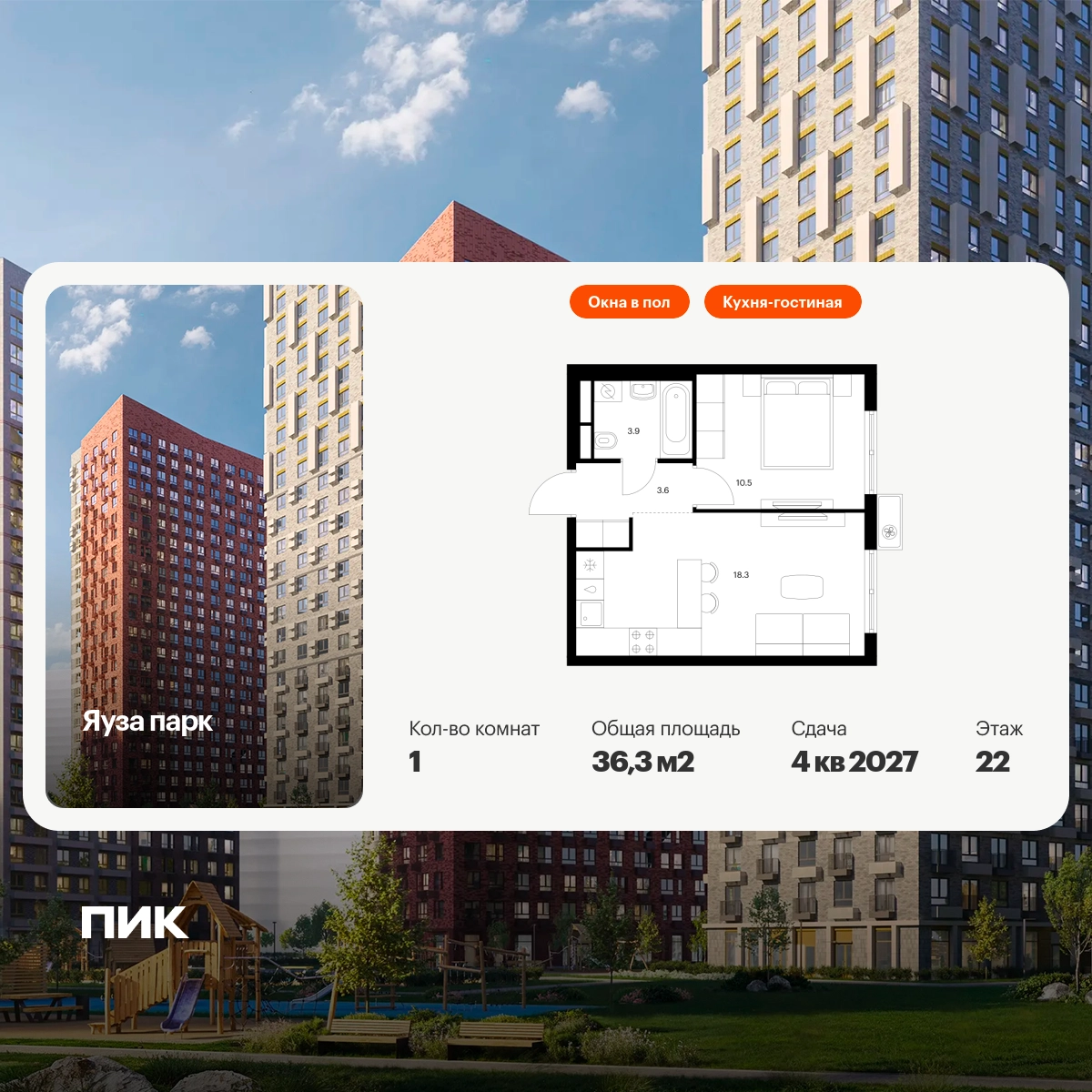 Продаётся 1-комн.квартира площадью 36.30 кв.м на 22 этаже 24 этажного дома (Корпус 12, секция 1) проекта ПИК Яуза парк. Светлый просторный подъезд на уровне земли, функциональная планировка, большие окна, с отделкой. Жилой квартал «Яуза парк» возводится в Мытищах, в 5 минутах ходьбы от одноимённой ж/д станции. Проект включает 20 домов разной этажности с благоустроенными дворами-парками. Индивидуальный дизайн фасадов разработали архитектурные бюро KATARSIS и RHIZOME. Вблизи жилого квартала появятся шумопоглощающие экраны, позволяющие забыть о том, что неподалёку находятся железнодорожные пути. На первых этажах домов откроются магазины, кафе, салоны красоты и другие полезные сервисы. Рядом есть школы и детские сады, магазины и ТРЦ «Красный кит». На территории проекта появится благоустроенная набережная реки Яузы и пешеходный бульвар для прогулок всей семьёй. Водонапорную башню XIX века, расположенную на территории «Яуза парка», мы реставрируем и создадим вокруг неё общественное пространство для отдыха жителей квартала. Для прогулок отлично подойдёт Мытищинский центральный парк культуры и отдыха, расположенный в 10 минутах ходьбы, и Лосиный остров — в 24 минутах. Дорога на автомобиле до Ярославского шоссе займёт не более 3 минут, до МКАД — 10 минут. Артикул - 1000874О застройщике