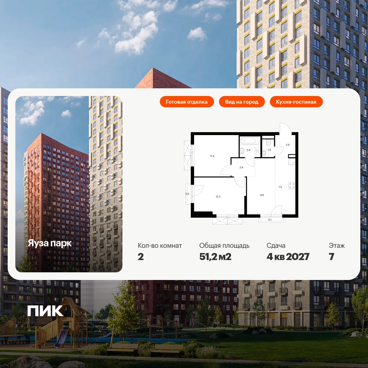 Продаётся 2-комн.квартира площадью 51.20 кв.м на 7 этаже 24 этажного дома (Корпус 7, секция 1) проекта ПИК Яуза парк. Светлый просторный подъезд на уровне земли, функциональная планировка, большие окна, с отделкой. Жилой квартал «Яуза парк» возводится в Мытищах, в 5 минутах ходьбы от одноимённой ж/д станции. Проект включает 20 домов разной этажности с благоустроенными дворами-парками. Индивидуальный дизайн фасадов разработали архитектурные бюро KATARSIS и RHIZOME. Вблизи жилого квартала появятся шумопоглощающие экраны, позволяющие забыть о том, что неподалёку находятся железнодорожные пути. На первых этажах домов откроются магазины, кафе, салоны красоты и другие полезные сервисы. Рядом есть школы и детские сады, магазины и ТРЦ «Красный кит». На территории проекта появится благоустроенная набережная реки Яузы и пешеходный бульвар для прогулок всей семьёй. Водонапорную башню XIX века, расположенную на территории «Яуза парка», мы реставрируем и создадим вокруг неё общественное пространство для отдыха жителей квартала. Для прогулок отлично подойдёт Мытищинский центральный парк культуры и отдыха, расположенный в 10 минутах ходьбы, и Лосиный остров — в 24 минутах. Дорога на автомобиле до Ярославского шоссе займёт не более 3 минут, до МКАД — 10 минут. Артикул - 995945О застройщике