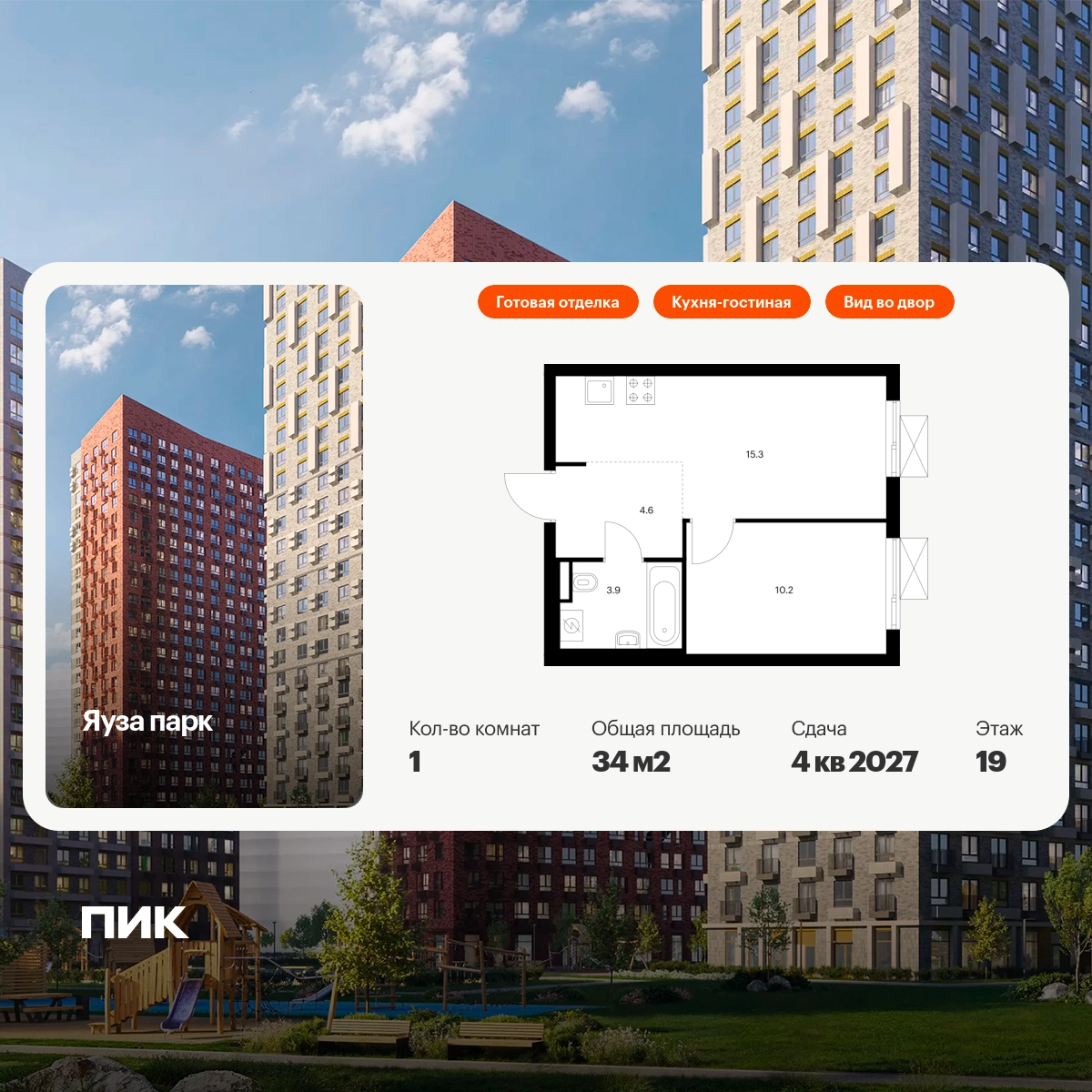 Продаётся 1-комн.квартира площадью 34.00 кв.м на 19 этаже 24 этажного дома (Корпус 7, секция 1) проекта ПИК Яуза парк. Светлый просторный подъезд на уровне земли, функциональная планировка, большие окна, с отделкой. Жилой квартал «Яуза парк» возводится в Мытищах, в 5 минутах ходьбы от одноимённой ж/д станции. Проект включает 20 домов разной этажности с благоустроенными дворами-парками. Индивидуальный дизайн фасадов разработали архитектурные бюро KATARSIS и RHIZOME. Вблизи жилого квартала появятся шумопоглощающие экраны, позволяющие забыть о том, что неподалёку находятся железнодорожные пути. На первых этажах домов откроются магазины, кафе, салоны красоты и другие полезные сервисы. Рядом есть школы и детские сады, магазины и ТРЦ «Красный кит». На территории проекта появится благоустроенная набережная реки Яузы и пешеходный бульвар для прогулок всей семьёй. Водонапорную башню XIX века, расположенную на территории «Яуза парка», мы реставрируем и создадим вокруг неё общественное пространство для отдыха жителей квартала. Для прогулок отлично подойдёт Мытищинский центральный парк культуры и отдыха, расположенный в 10 минутах ходьбы, и Лосиный остров — в 24 минутах. Дорога на автомобиле до Ярославского шоссе займёт не более 3 минут, до МКАД — 10 минут. Артикул - 996131О застройщике