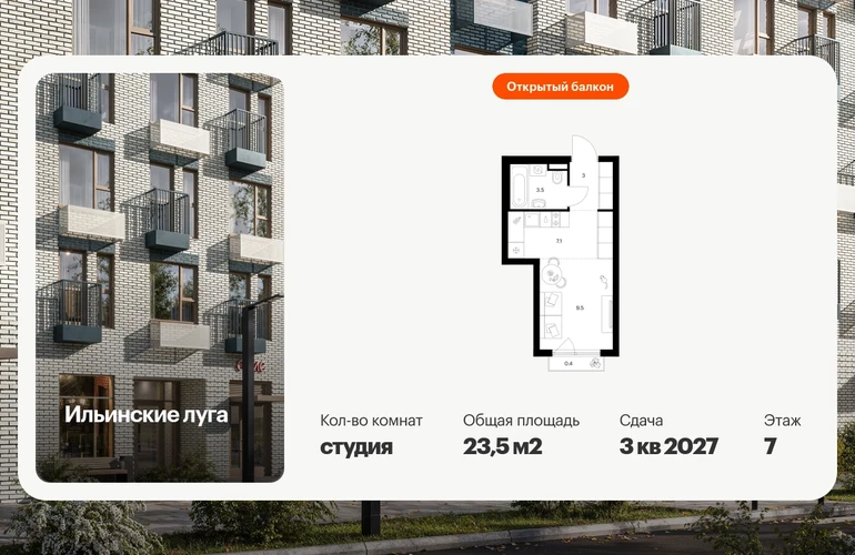 Продаётся квартира-студия площадью 23.50 кв.м на 7 этаже 9 этажного дома (Корпус 4.3, секция 4) проекта ПИК Ильинские луга. Светлый просторный подъезд на уровне земли, функциональная планировка, большие окна, с отделкой. Жилой район «Ильинские луга» находится в 10 километрах от МКАД по Новорижскому шоссе, в 20 минутах на автомобиле от станций метро «Волоколамская», «Тушинская» и «Строгино». В будущем ближе к проекту, в 9 минутах пути на машине, откроется станция «Ильинская» Рублёво-Архангельской линии, которая будет соединять Арбатско-Покровскую линию и Большую кольцевую линию. «Ильинские луга» — масштабный проект, в который входит девять детских садов, четыре школы и поликлиника. Он строится в престижном и экологичном районе среди лесов и памятников природы. За 5 минут от жилого квартала можно доехать до Рублёво-Успенского шоссе, а за 30 минут — до центра Москвы. До крупного торгового центра «РИГАМОЛЛ» всего 5 минут на автомобиле, а до ТЦ «Твой дом» и гипермаркета «Глобус» — 10 минут. В «Ильинских лугах» строятся только девятиэтажные дома — такая архитектура соответствует спокойной жизни за городом. В каждом дворе-парке есть места для отдыха, детские и спортивные площадки. А ещё, здесь уже открыт большой PlayHub «Гравити» — современное игровое пространство с космической тематикой, холмами, зонами для игр и отдыха жителей любого возраста. На первых этажах уже работают магазины, кафе и пекарни. Места для отдыха от «Ильинских лугов» тоже недалеко: 10 минут на машине — и вы в музее-усадьбе «Архангельское». Также рядом находится Лохин остров — памятник природы, где водятся речные черепахи, есть места для кемпинга и возможность сплавиться по реке. Артикул - 1012167О застройщике