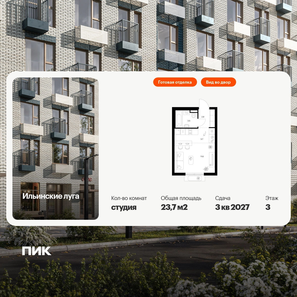 Продаётся квартира-студия площадью 23.70 кв.м на 3 этаже 9 этажного дома (Корпус 3.1, секция 2) проекта ПИК Ильинские луга. Светлый просторный подъезд на уровне земли, функциональная планировка, большие окна, с отделкой. Жилой район «Ильинские луга» находится в 10 километрах от МКАД по Новорижскому шоссе, в 20 минутах на автомобиле от станций метро «Волоколамская», «Тушинская» и «Строгино». В будущем ближе к проекту, в 9 минутах пути на машине, откроется станция «Ильинская» Рублёво-Архангельской линии, которая будет соединять Арбатско-Покровскую линию и Большую кольцевую линию. «Ильинские луга» — масштабный проект, в который входит девять детских садов, четыре школы и поликлиника. Он строится в престижном и экологичном районе среди лесов и памятников природы. За 5 минут от жилого квартала можно доехать до Рублёво-Успенского шоссе, а за 30 минут — до центра Москвы. До крупного торгового центра «РИГАМОЛЛ» всего 5 минут на автомобиле, а до ТЦ «Твой дом» и гипермаркета «Глобус» — 10 минут. В «Ильинских лугах» строятся только девятиэтажные дома — такая архитектура соответствует спокойной жизни за городом. В каждом дворе-парке есть места для отдыха, детские и спортивные площадки. А ещё, здесь уже открыт большой PlayHub «Гравити» — современное игровое пространство с космической тематикой, холмами, зонами для игр и отдыха жителей любого возраста. На первых этажах уже работают магазины, кафе и пекарни. Места для отдыха от «Ильинских лугов» тоже недалеко: 10 минут на машине — и вы в музее-усадьбе «Архангельское». Также рядом находится Лохин остров — памятник природы, где водятся речные черепахи, есть места для кемпинга и возможность сплавиться по реке. Артикул - 1001422О застройщике