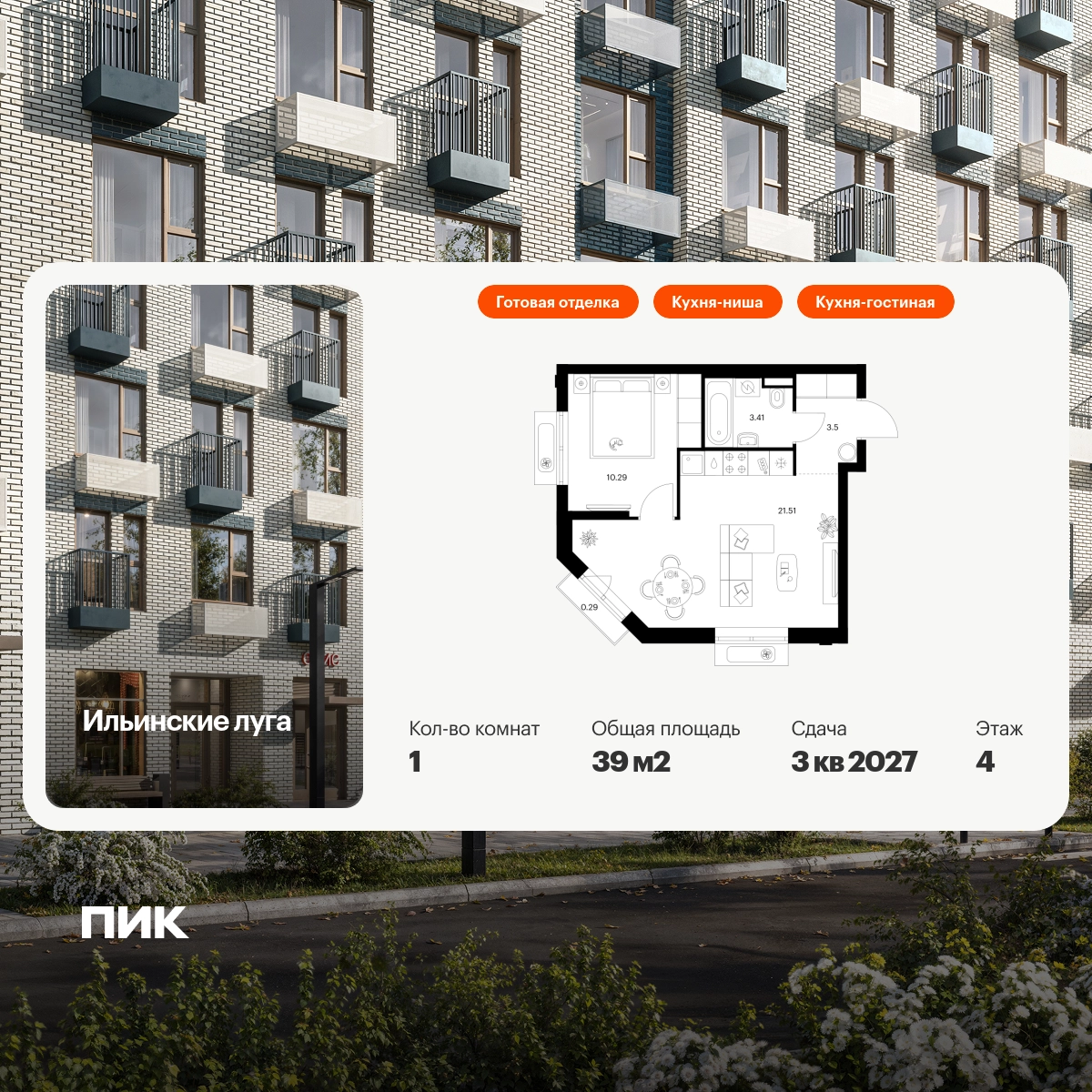 Продаётся 1-комн.квартира площадью 39.00 кв.м на 4 этаже 9 этажного дома (Корпус 4.2, секция 2) проекта ПИК Ильинские луга. Светлый просторный подъезд на уровне земли, функциональная планировка, большие окна, с отделкой. Артикул - 1015420О застройщике