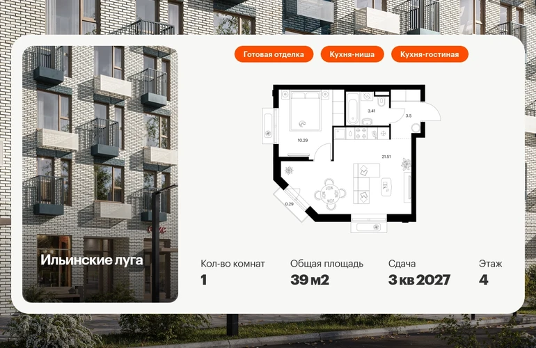 Продаётся 1-комн.квартира площадью 39.00 кв.м на 4 этаже 9 этажного дома (Корпус 4.2, секция 2) проекта ПИК Ильинские луга. Светлый просторный подъезд на уровне земли, функциональная планировка, большие окна, с отделкой. Артикул - 1015420О застройщике