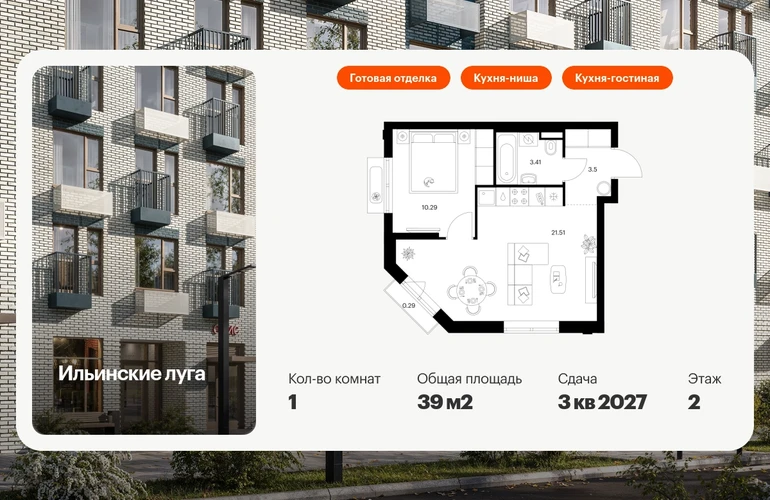 Продаётся 1-комн.квартира площадью 39.00 кв.м на 2 этаже 9 этажного дома (Корпус 4.2, секция 2) проекта ПИК Ильинские луга. Светлый просторный подъезд на уровне земли, функциональная планировка, большие окна, с отделкой. Жилой район «Ильинские луга» находится в 10 километрах от МКАД по Новорижскому шоссе, в 20 минутах на автомобиле от станций метро «Волоколамская», «Тушинская» и «Строгино». В будущем ближе к проекту, в 9 минутах пути на машине, откроется станция «Ильинская» Рублёво-Архангельской линии, которая будет соединять Арбатско-Покровскую линию и Большую кольцевую линию. «Ильинские луга» — масштабный проект, в который входит девять детских садов, четыре школы и поликлиника. Он строится в престижном и экологичном районе среди лесов и памятников природы. За 5 минут от жилого квартала можно доехать до Рублёво-Успенского шоссе, а за 30 минут — до центра Москвы. До крупного торгового центра «РИГАМОЛЛ» всего 5 минут на автомобиле, а до ТЦ «Твой дом» и гипермаркета «Глобус» — 10 минут. В «Ильинских лугах» строятся только девятиэтажные дома — такая архитектура соответствует спокойной жизни за городом. В каждом дворе-парке есть места для отдыха, детские и спортивные площадки. А ещё, здесь уже открыт большой PlayHub «Гравити» — современное игровое пространство с космической тематикой, холмами, зонами для игр и отдыха жителей любого возраста. На первых этажах уже работают магазины, кафе и пекарни. Места для отдыха от «Ильинских лугов» тоже недалеко: 10 минут на машине — и вы в музее-усадьбе «Архангельское». Также рядом находится Лохин остров — памятник природы, где водятся речные черепахи, есть места для кемпинга и возможность сплавиться по реке. Артикул - 1015392О застройщике