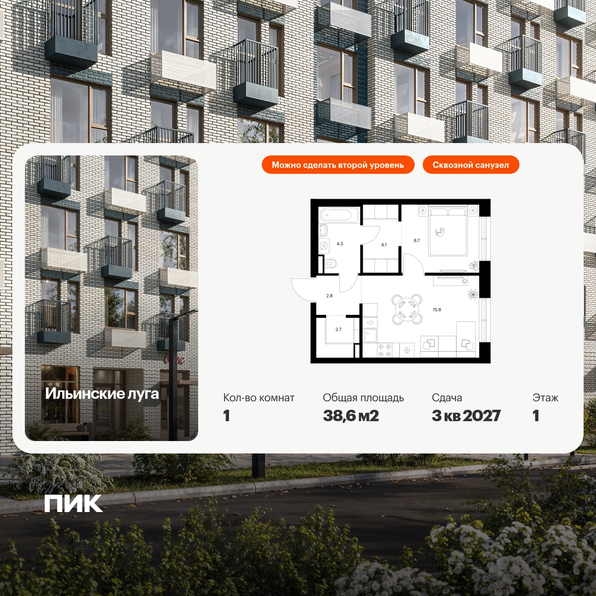Продаётся 1-комн.квартира площадью 38.60 кв.м на 1 этаже 9 этажного дома (Корпус 4.3, секция 4) проекта ПИК Ильинские луга. Светлый просторный подъезд на уровне земли, функциональная планировка, большие окна, с отделкой. Жилой район «Ильинские луга» находится в 10 километрах от МКАД по Новорижскому шоссе, в 20 минутах на автомобиле от станций метро «Волоколамская», «Тушинская» и «Строгино». В будущем ближе к проекту, в 9 минутах пути на машине, откроется станция «Ильинская» Рублёво-Архангельской линии, которая будет соединять Арбатско-Покровскую линию и Большую кольцевую линию. «Ильинские луга» — масштабный проект, в который входит девять детских садов, четыре школы и поликлиника. Он строится в престижном и экологичном районе среди лесов и памятников природы. За 5 минут от жилого квартала можно доехать до Рублёво-Успенского шоссе, а за 30 минут — до центра Москвы. До крупного торгового центра «РИГАМОЛЛ» всего 5 минут на автомобиле, а до ТЦ «Твой дом» и гипермаркета «Глобус» — 10 минут. В «Ильинских лугах» строятся только девятиэтажные дома — такая архитектура соответствует спокойной жизни за городом. В каждом дворе-парке есть места для отдыха, детские и спортивные площадки. А ещё, здесь уже открыт большой PlayHub «Гравити» — современное игровое пространство с космической тематикой, холмами, зонами для игр и отдыха жителей любого возраста. На первых этажах уже работают магазины, кафе и пекарни. Места для отдыха от «Ильинских лугов» тоже недалеко: 10 минут на машине — и вы в музее-усадьбе «Архангельское». Также рядом находится Лохин остров — памятник природы, где водятся речные черепахи, есть места для кемпинга и возможность сплавиться по реке. Артикул - 1012087О застройщике