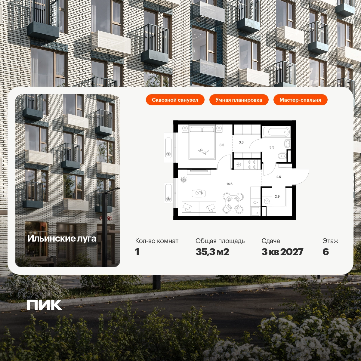Продаётся 1-комн.квартира площадью 35.30 кв.м на 6 этаже 9 этажного дома (Корпус 4.3, секция 3) проекта ПИК Ильинские луга. Светлый просторный подъезд на уровне земли, функциональная планировка, большие окна, с отделкой. Жилой район «Ильинские луга» находится в 10 километрах от МКАД по Новорижскому шоссе, в 20 минутах на автомобиле от станций метро «Волоколамская», «Тушинская» и «Строгино». В будущем ближе к проекту, в 9 минутах пути на машине, откроется станция «Ильинская» Рублёво-Архангельской линии, которая будет соединять Арбатско-Покровскую линию и Большую кольцевую линию. «Ильинские луга» — масштабный проект, в который входит девять детских садов, четыре школы и поликлиника. Он строится в престижном и экологичном районе среди лесов и памятников природы. За 5 минут от жилого квартала можно доехать до Рублёво-Успенского шоссе, а за 30 минут — до центра Москвы. До крупного торгового центра «РИГАМОЛЛ» всего 5 минут на автомобиле, а до ТЦ «Твой дом» и гипермаркета «Глобус» — 10 минут. В «Ильинских лугах» строятся только девятиэтажные дома — такая архитектура соответствует спокойной жизни за городом. В каждом дворе-парке есть места для отдыха, детские и спортивные площадки. А ещё, здесь уже открыт большой PlayHub «Гравити» — современное игровое пространство с космической тематикой, холмами, зонами для игр и отдыха жителей любого возраста. На первых этажах уже работают магазины, кафе и пекарни. Места для отдыха от «Ильинских лугов» тоже недалеко: 10 минут на машине — и вы в музее-усадьбе «Архангельское». Также рядом находится Лохин остров — памятник природы, где водятся речные черепахи, есть места для кемпинга и возможность сплавиться по реке. Артикул - 1012041О застройщике