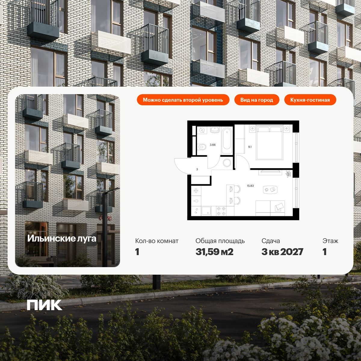 Продаётся 1-комн.квартира площадью 31.59 кв.м на 1 этаже 9 этажного дома (Корпус 3.2, секция 3) проекта ПИК Ильинские луга. Светлый просторный подъезд на уровне земли, функциональная планировка, большие окна, с отделкой. Жилой район «Ильинские луга» находится в 10 километрах от МКАД по Новорижскому шоссе, в 20 минутах на автомобиле от станций метро «Волоколамская», «Тушинская» и «Строгино». В будущем ближе к проекту, в 9 минутах пути на машине, откроется станция «Ильинская» Рублёво-Архангельской линии, которая будет соединять Арбатско-Покровскую линию и Большую кольцевую линию. «Ильинские луга» — масштабный проект, в который входит девять детских садов, четыре школы и поликлиника. Он строится в престижном и экологичном районе среди лесов и памятников природы. За 5 минут от жилого квартала можно доехать до Рублёво-Успенского шоссе, а за 30 минут — до центра Москвы. До крупного торгового центра «РИГАМОЛЛ» всего 5 минут на автомобиле, а до ТЦ «Твой дом» и гипермаркета «Глобус» — 10 минут. В «Ильинских лугах» строятся только девятиэтажные дома — такая архитектура соответствует спокойной жизни за городом. В каждом дворе-парке есть места для отдыха, детские и спортивные площадки. А ещё, здесь уже открыт большой PlayHub «Гравити» — современное игровое пространство с космической тематикой, холмами, зонами для игр и отдыха жителей любого возраста. На первых этажах уже работают магазины, кафе и пекарни. Места для отдыха от «Ильинских лугов» тоже недалеко: 10 минут на машине — и вы в музее-усадьбе «Архангельское». Также рядом находится Лохин остров — памятник природы, где водятся речные черепахи, есть места для кемпинга и возможность сплавиться по реке. Артикул - 999730О застройщике