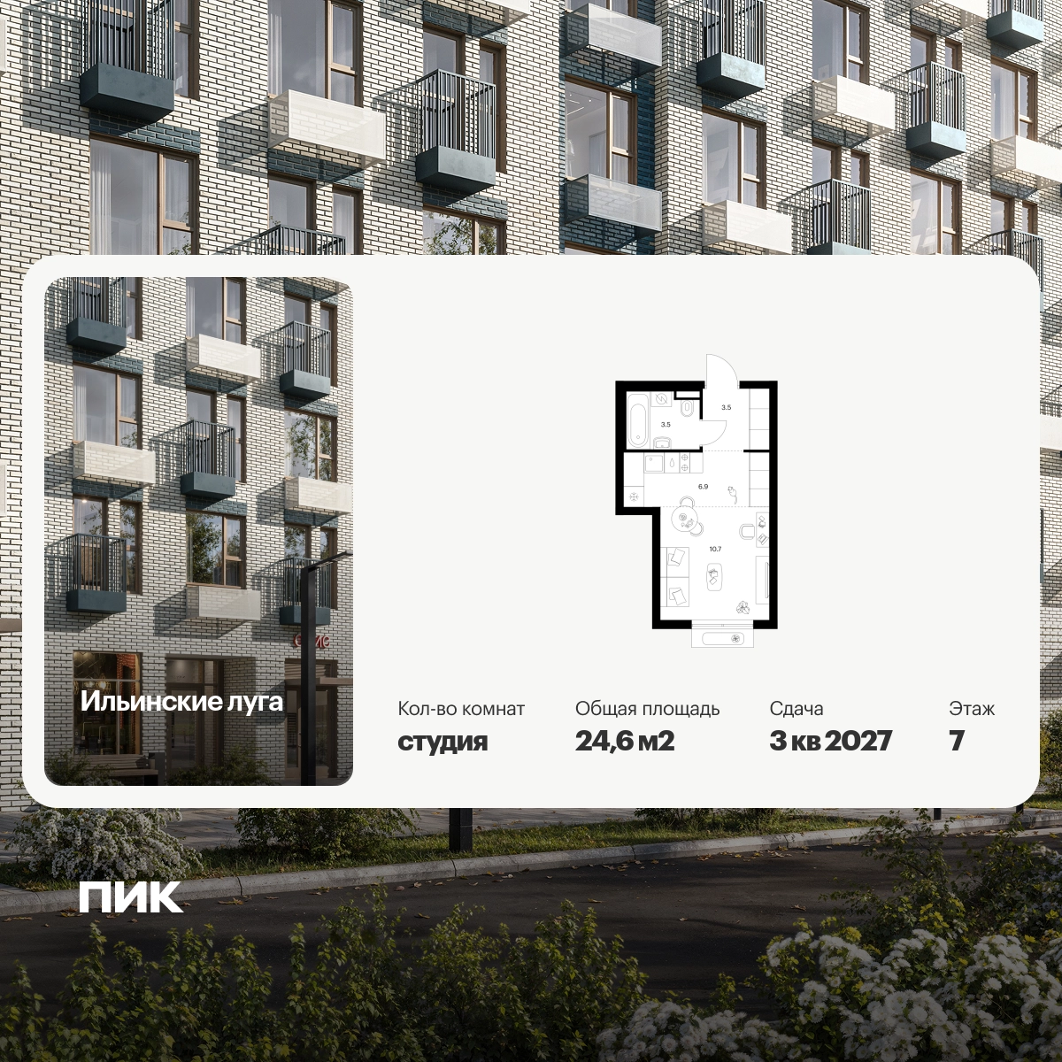Продаётся квартира-студия площадью 24.60 кв.м на 7 этаже 9 этажного дома (Корпус 4.3, секция 2) проекта ПИК Ильинские луга. Светлый просторный подъезд на уровне земли, функциональная планировка, большие окна, с отделкой. Жилой район «Ильинские луга» находится в 10 километрах от МКАД по Новорижскому шоссе, в 20 минутах на автомобиле от станций метро «Волоколамская», «Тушинская» и «Строгино». В будущем ближе к проекту, в 9 минутах пути на машине, откроется станция «Ильинская» Рублёво-Архангельской линии, которая будет соединять Арбатско-Покровскую линию и Большую кольцевую линию. «Ильинские луга» — масштабный проект, в который входит девять детских садов, четыре школы и поликлиника. Он строится в престижном и экологичном районе среди лесов и памятников природы. За 5 минут от жилого квартала можно доехать до Рублёво-Успенского шоссе, а за 30 минут — до центра Москвы. До крупного торгового центра «РИГАМОЛЛ» всего 5 минут на автомобиле, а до ТЦ «Твой дом» и гипермаркета «Глобус» — 10 минут. В «Ильинских лугах» строятся только девятиэтажные дома — такая архитектура соответствует спокойной жизни за городом. В каждом дворе-парке есть места для отдыха, детские и спортивные площадки. А ещё, здесь уже открыт большой PlayHub «Гравити» — современное игровое пространство с космической тематикой, холмами, зонами для игр и отдыха жителей любого возраста. На первых этажах уже работают магазины, кафе и пекарни. Места для отдыха от «Ильинских лугов» тоже недалеко: 10 минут на машине — и вы в музее-усадьбе «Архангельское». Также рядом находится Лохин остров — памятник природы, где водятся речные черепахи, есть места для кемпинга и возможность сплавиться по реке. Артикул - 1011941О застройщике